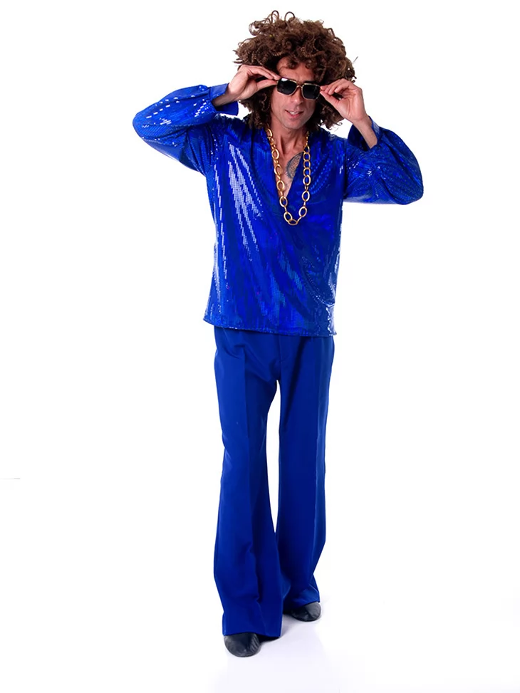 Костюм «Сапфіровий Повелитель Диско» створено для тих, хто хоче сяяти в променях софітів. Яскравий синій образ з ефектом блиску ідеально підходить для дискотеки, ретро-шоу, вечірки або карнавалу. Завдяки послузі оренда карнавальних костюмів цей стильний образ доступний кожному, хто прагне справити незабутнє враження.