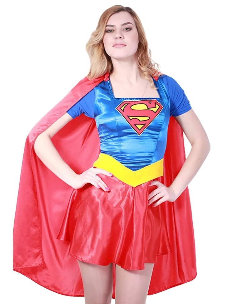 Костюм «СуперЖінка» — яскравий та впевнений образ, що втілює дух супергероїні. Поєднання насиченого синього, червоного й жовтого кольорів миттєво викликає асоціацію з силою, добром і захистом. Герб на грудях є символом надії та незламності, а коротка спідниця та плащ додають динаміки та сміливості. Цей образ чудово підійде для супергеройських вечірок, тематичних свят, фотосесій, виступів або карнавальних подій. Завдяки сервісу оренда карнавальних костюмів кожен може на один день стати героїнею з іншого світу.