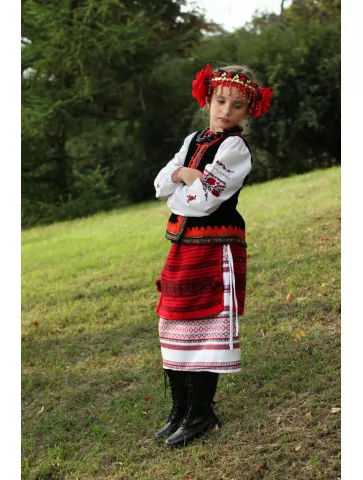 Український народний костюм з червоно-чорною вишивкою
