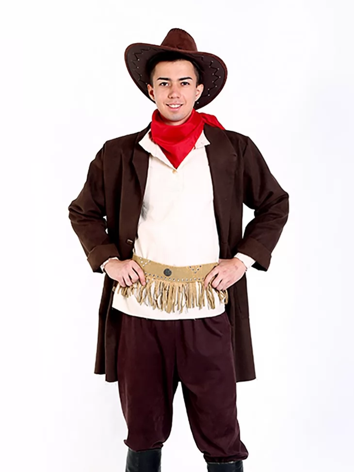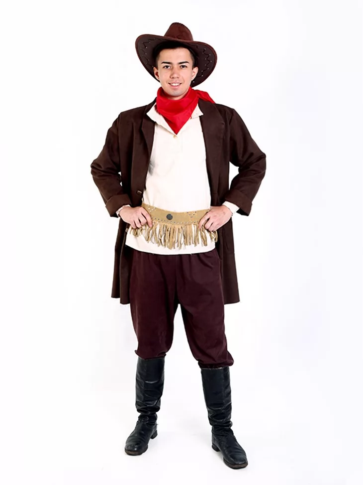 Цей карнавальний костюм ковбоя у світлих та глибоких кольорах передає дух американського фронтиру, де правили сила, відвага і непохитна воля. Гармонійне поєднання текстур і аксесуарів створює цілісний образ мандрівника або захисника маленького містечка.