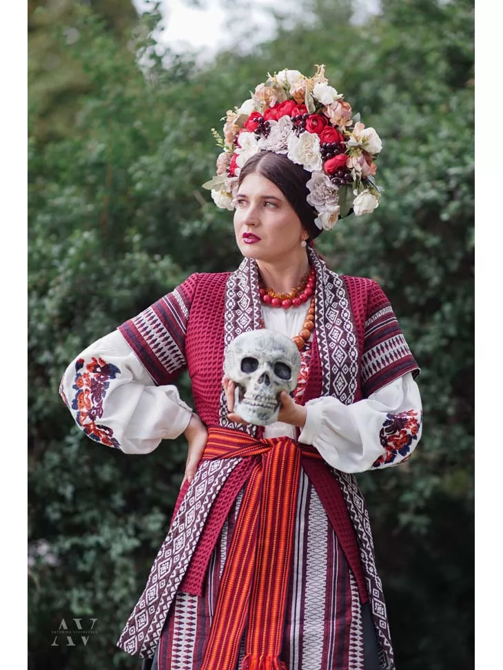 Костюм Українки Темного Фольклору з вінком і символічним черепом