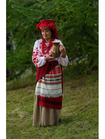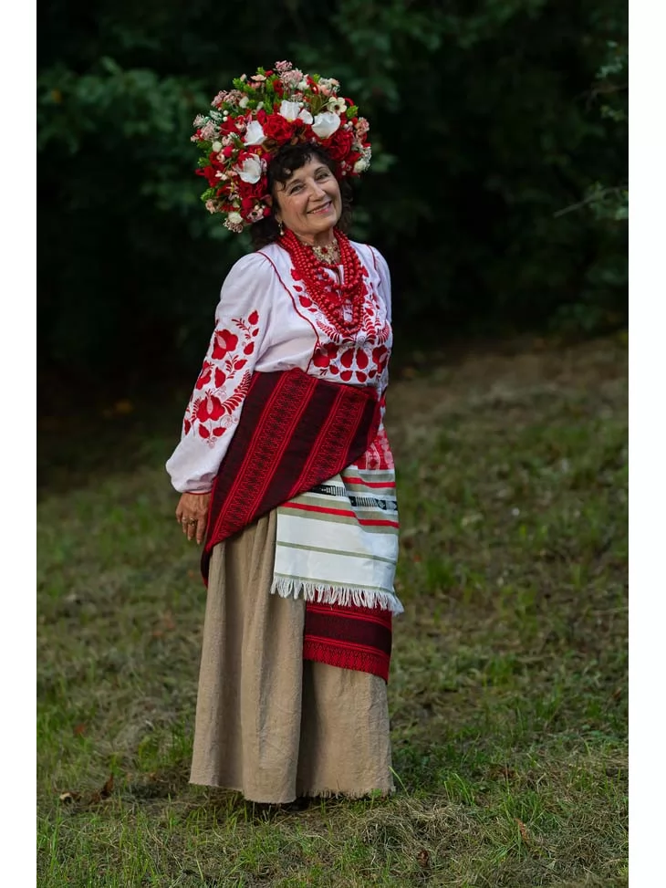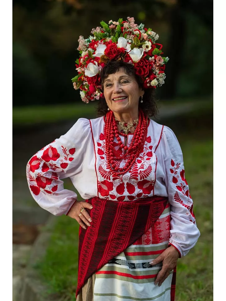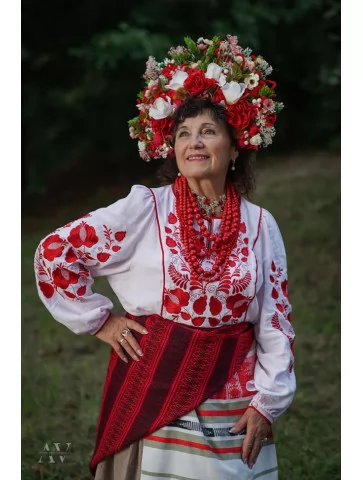 Цей образ — теплий, життєрадісний і дуже щирий. Він передає характер української господині — жінки з відкритою душею, добрим серцем і глибоким зв’язком із традиціями. Багата червона вишивка, пишний квітковий вінок та багаторядне намисто створюють відчуття свята, родинного затишку й достатку. Це яскравий та автентичний варіант для оренди карнавальних костюмів, коли хочеться справжнього народного образу.