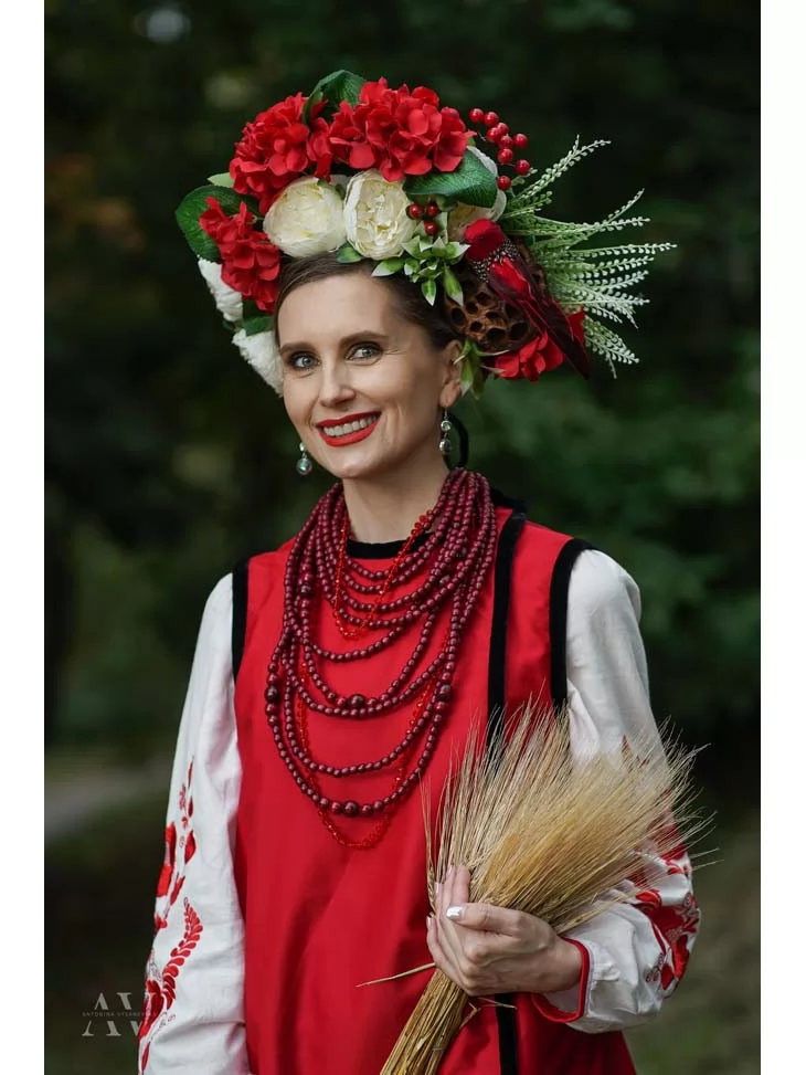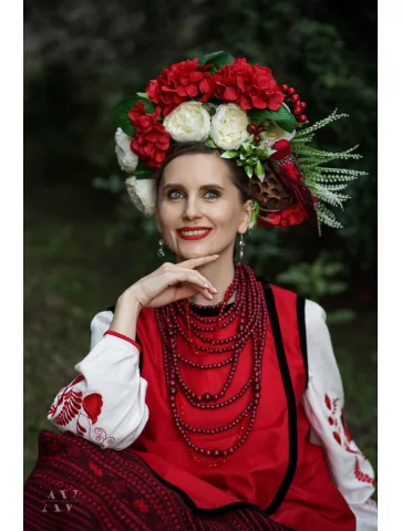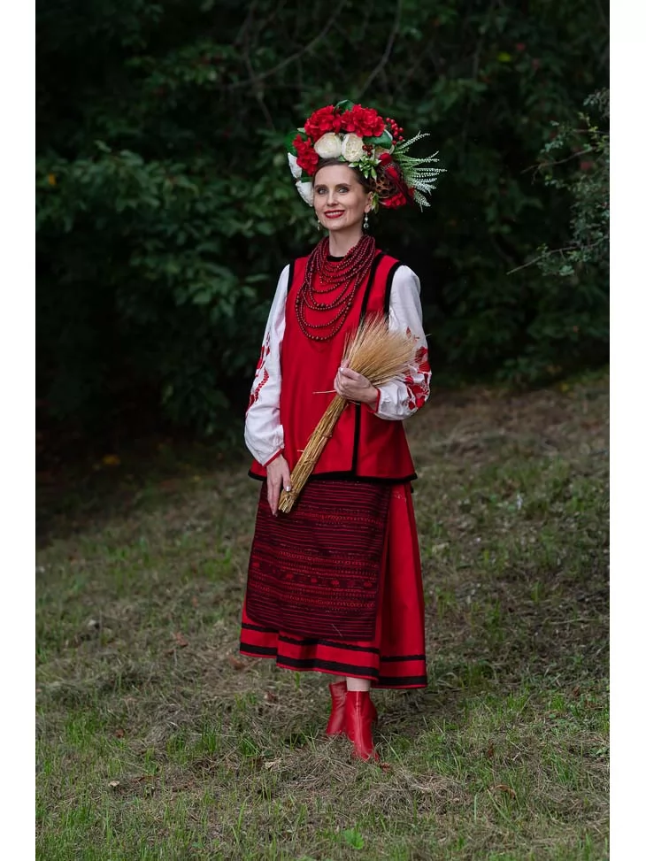 Український традиційний костюм у червоному кольорі