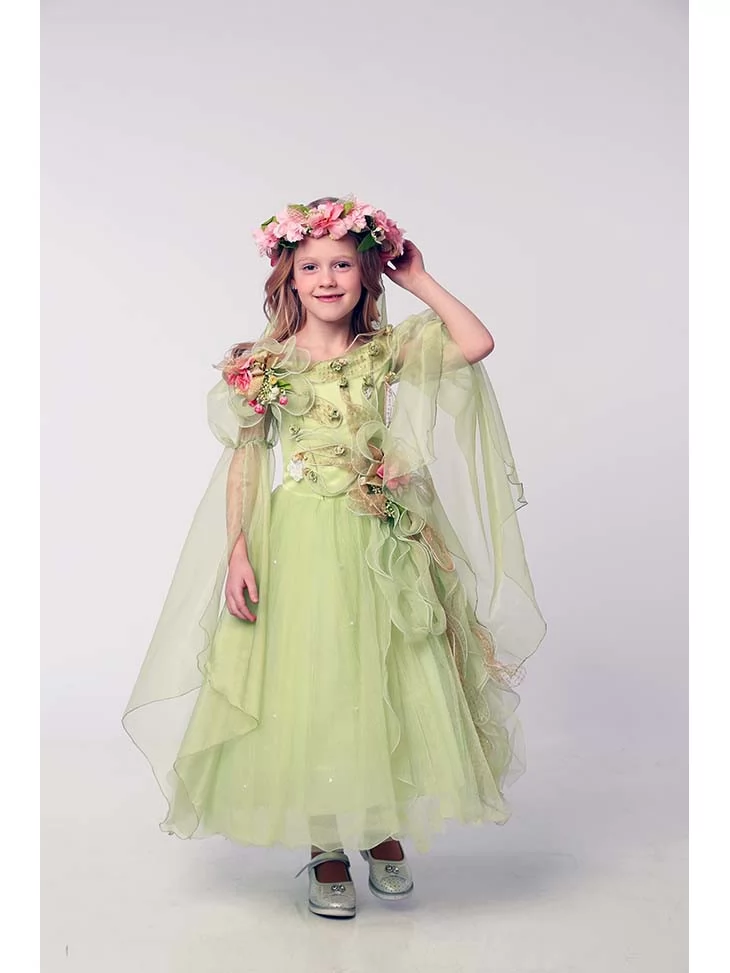 Костюм Квітучої Весни Зелений Шарм наповнює образ світлом, ніжністю та справжньою атмосферою весняного розквіту. Також прекрасно підійде для прокату карнавальних костюмів для свят пори року та театралізованих заходів.