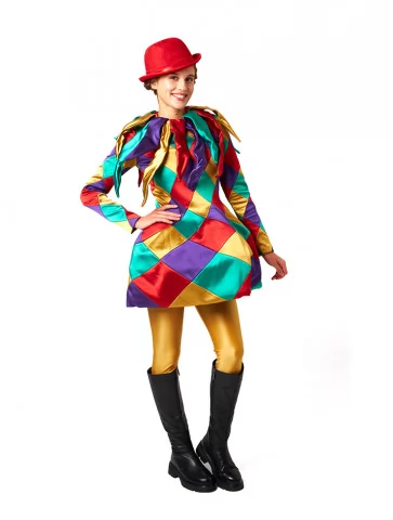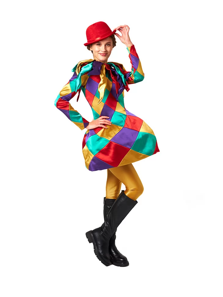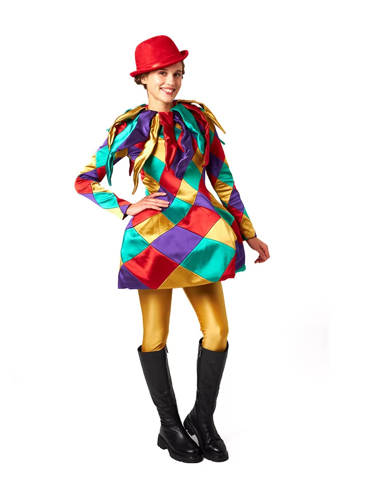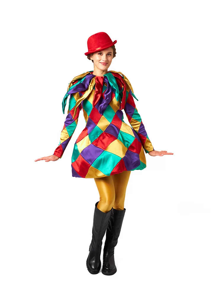 Костюм Карнавальної Арлекінки наповнить подію кольорами та емоціями — обирайте прокат карнавальних костюмів для справжнього святкового настрою.