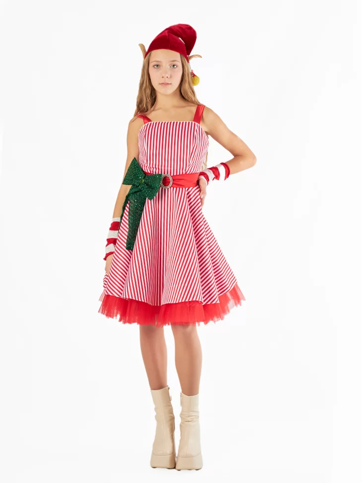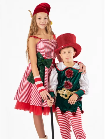 Святкова оренда карнавальних костюмів — це завжди шанс створити незабутній образ без клопоту. Яскравий костюм ельфа у червоно-білій гамі ідеально підійде для новорічних вистав, дитячих ранків, святкування Різдва, участі в фотосесіях або контент-зйомках.