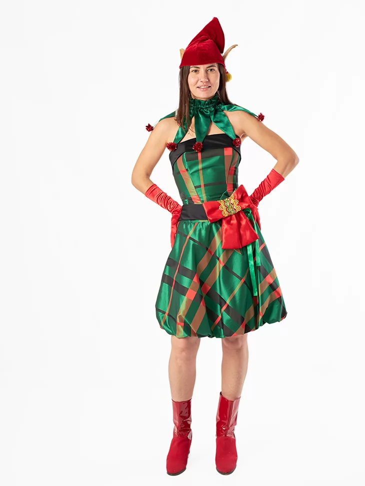 Костюм «Ельфійка Подарунковий Бант» — це стильний і грайливий образ, що перенесе вас у саме серце майстерні Санти. Яскрава клітинка, блискучий зелено-червоний сатин і декоративні банти створюють ефект подарунка, що ожив. Цей костюм ідеально підійде для новорічних заходів, корпоративів та веселих фотосесій, додаючи кожній події нотку чарівної казки. Скористайтеся можливістю оренди карнавальних костюмів, щоб виглядати яскраво, не витрачаючи надмірно на одноразовий образ.