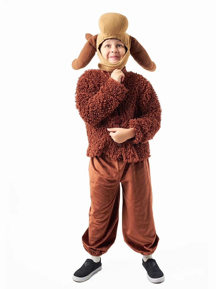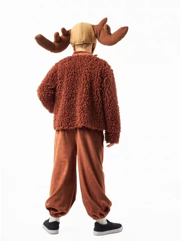 Цей милий та затишний образ одразу викликає асоціації з зимовими казками, лісовими пригодами та святковим настроєм. Пухнаста фактура тканини, теплі коричневі відтінки та шапка з рогами створюють впізнаваний персонаж оленя. Чудовий варіант для оренди карнавальних костюмів на новорічні ранки, вистави й тематичні заходи.