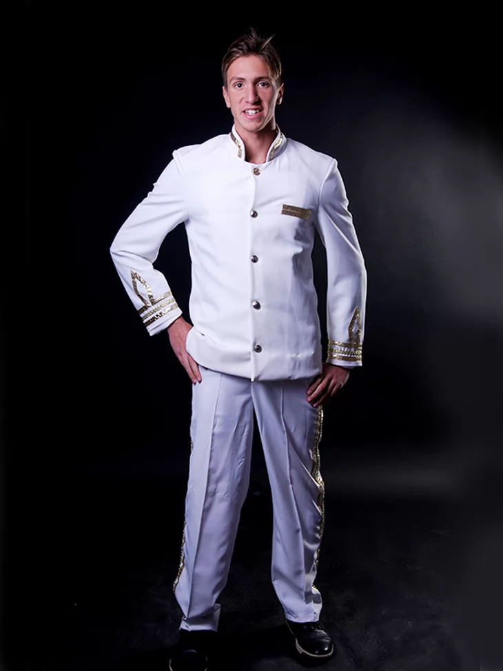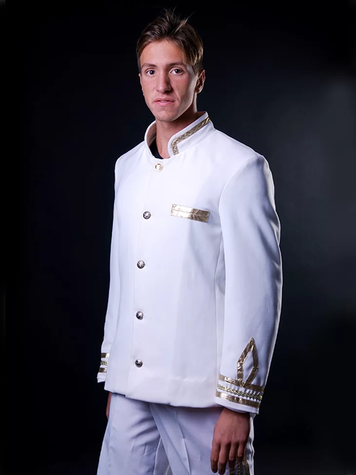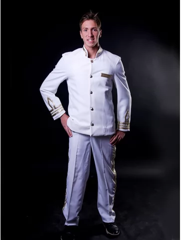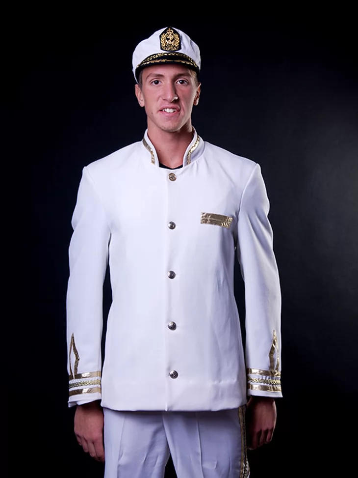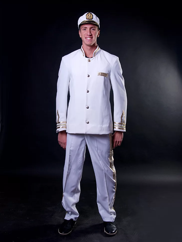 Цей урочистий образ уособлює впевненість, лідерство та романтику морських подорожей. Білий капітанський костюм із золотим оздобленням створює чіткий, статусний силует людини, яка стоїть біля штурвала й веде корабель уперед. Образ ідеально підходить для оренди карнавальних костюмів на тематичні вечірки, фотосесії, шоу та святкові події.