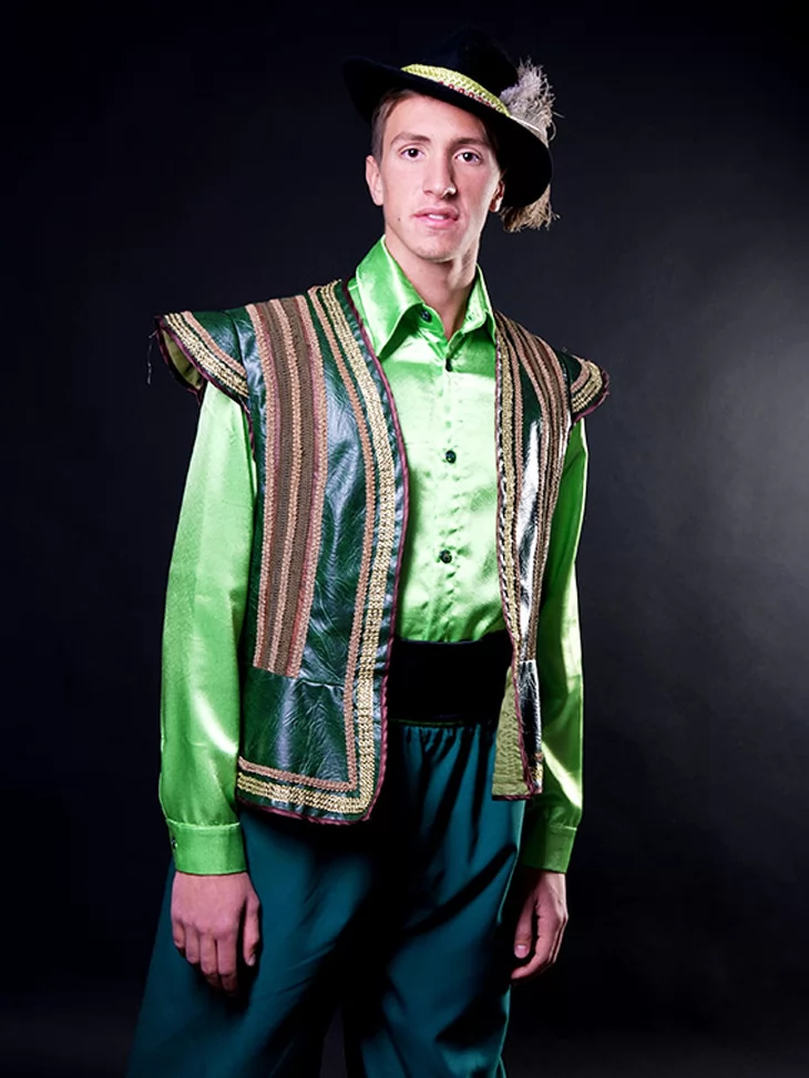 – зелена сорочка з блиском та легким переливом, що імітує казкову тканину