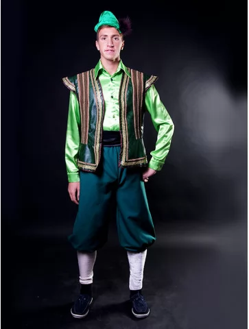 Карнавальний костюм Пітера Пена — це образ героя, який живе у світі фантазій, пригод і дитинства. Яскравий зелений одяг миттєво впізнається і створює настрій казки. Ідеальне рішення для свят, виступів та тематичних заходів, де потрібен образ мрійника та хороброго героя.
