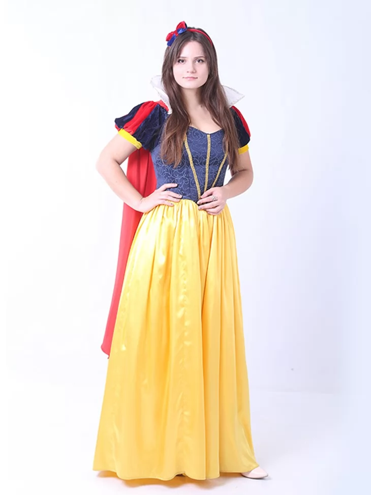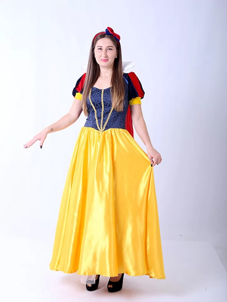 Костюм «Білосніжка - Золота Лісова Принцеса» — втілення класичної казкової краси та доброти. Образ натхненний легендарною героїнею з мультфільму Білосніжка, що завжди залишалася символом чистоти, ніжності та магії лісу. Поєднання насичено-синього корсета, жовтої атласної спідниці та червоних акцентів створює яскраву впізнавану палітру, яка ідеально підходить для костюмованих подій. Цей костюм стане чудовим вибором для фотосесій, дитячих свят, казкових заходів та виступів. Завдяки сервісу оренда карнавальних костюмів кожна дівчина зможе приміряти на себе роль доброї принцеси.