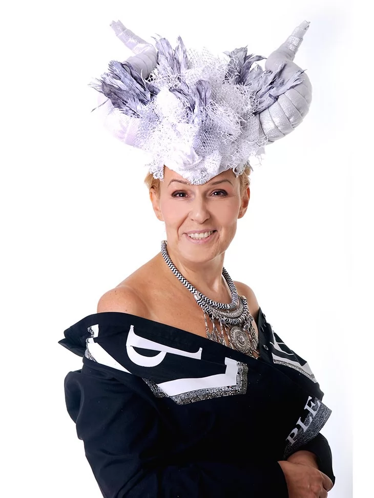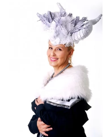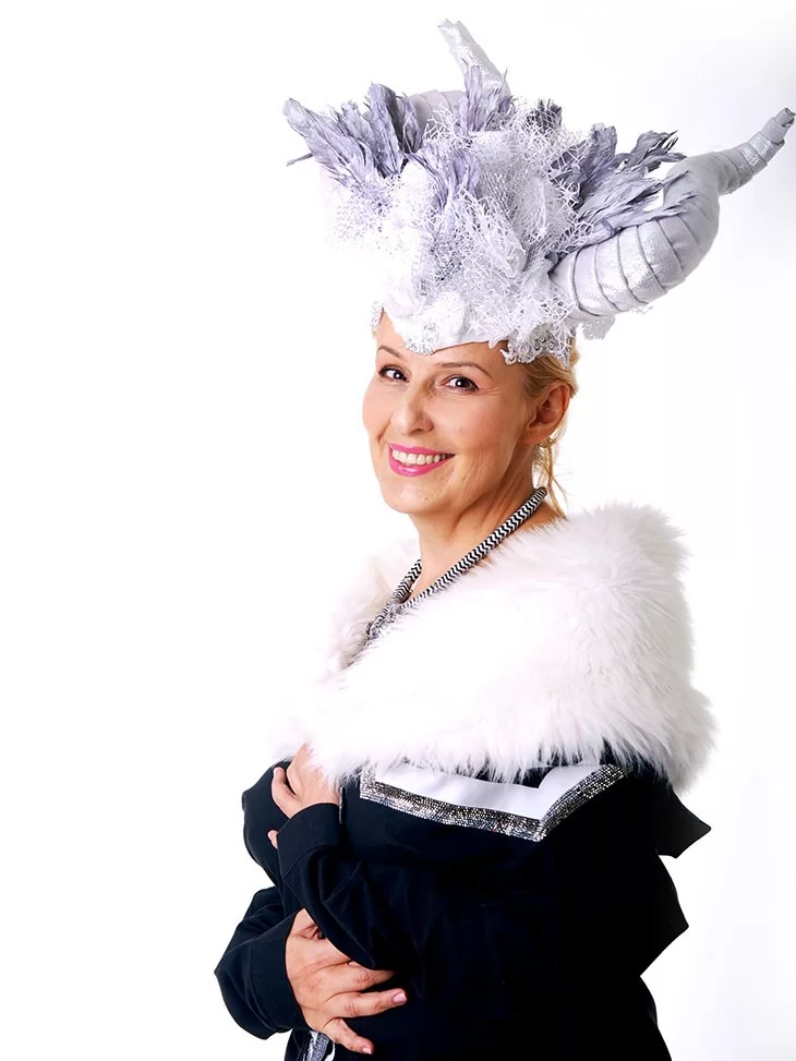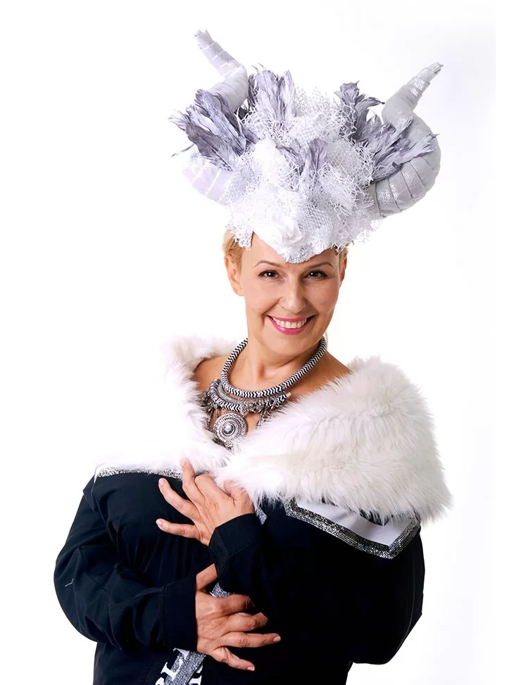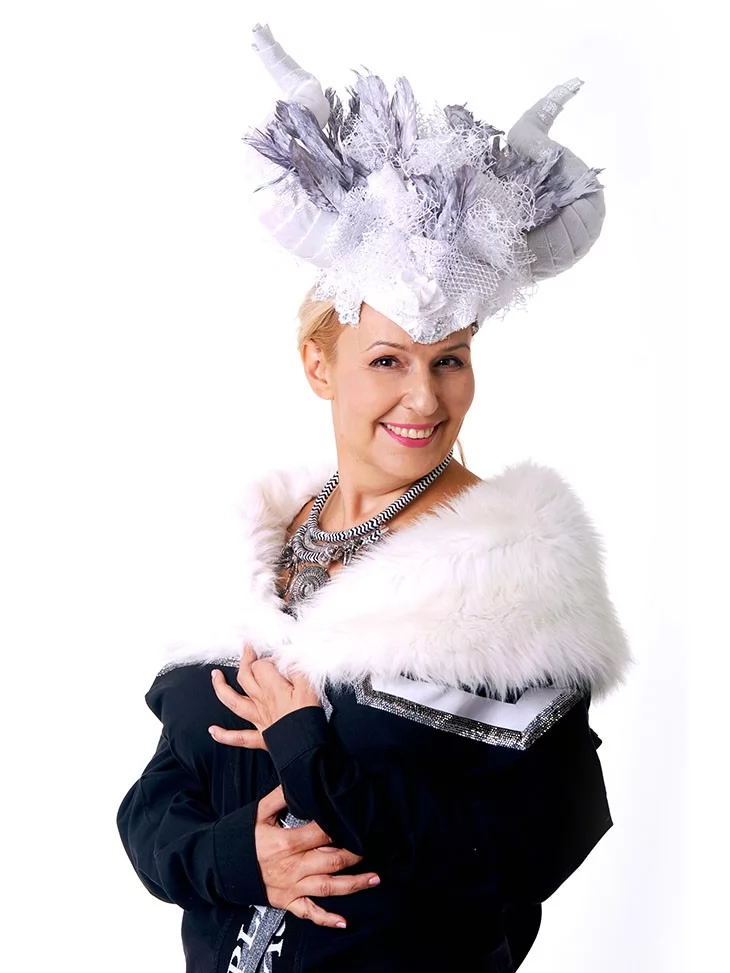 – унікальний головний убір з рогами, пір’ям, сіткою та сріблястим мереживом