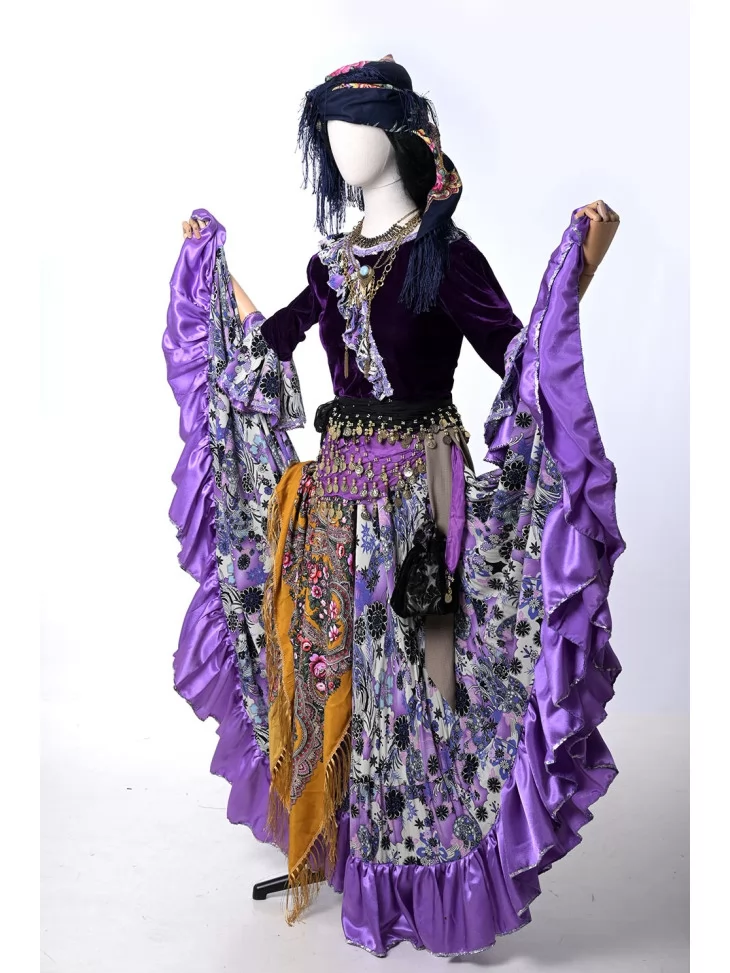 Оренда карнавальних костюмів — це шанс втілити неповторний образ жінки з містичним шармом. Цей розкішний циганський костюм захоплює своїми барвами, ритмом і характером.