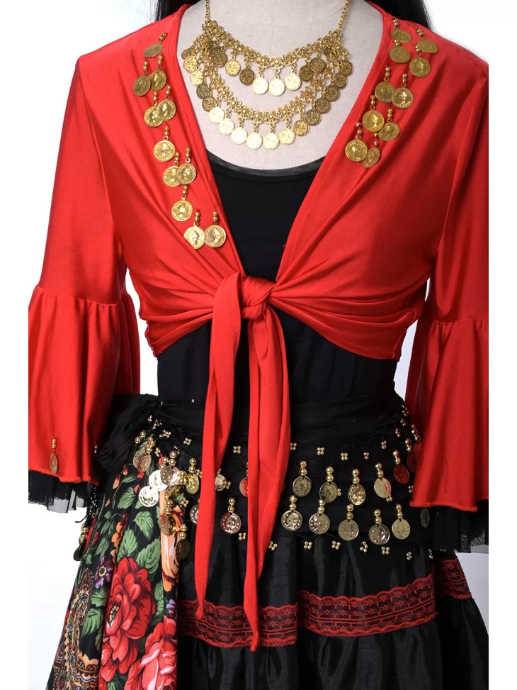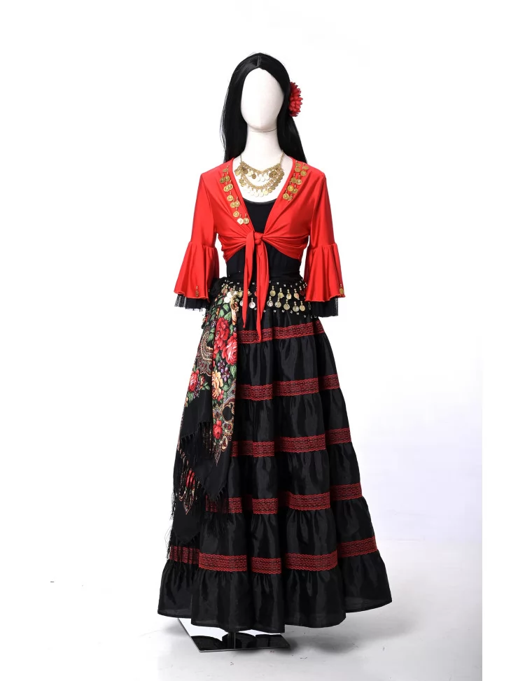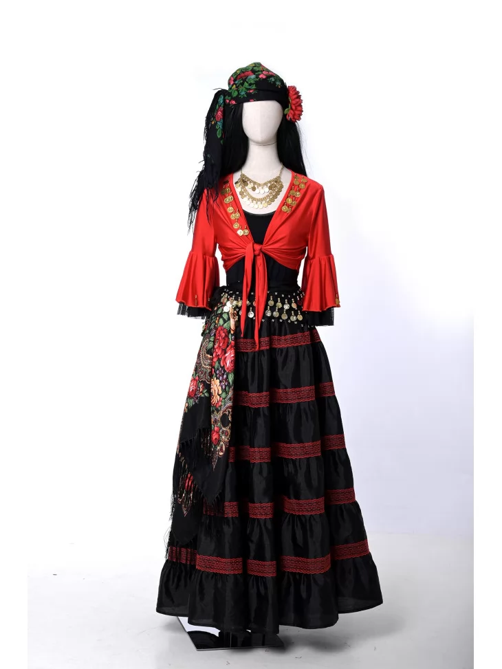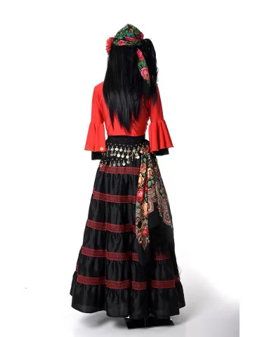Оренда карнавальних костюмів — це ідеальний спосіб перевтілитись у яскравий, жіночний і пристрасний образ. Циганський костюм «Циганка в Червоному» вражає поєднанням глибокого чорного та яскравого червоного кольорів, що символізують силу, свободу та емоцію.