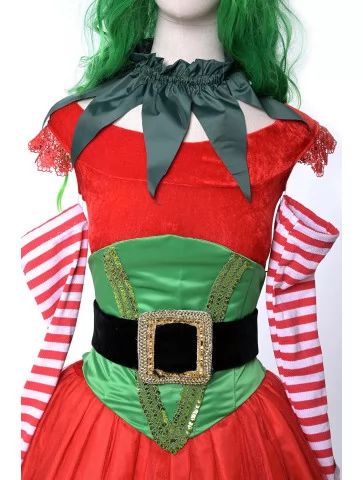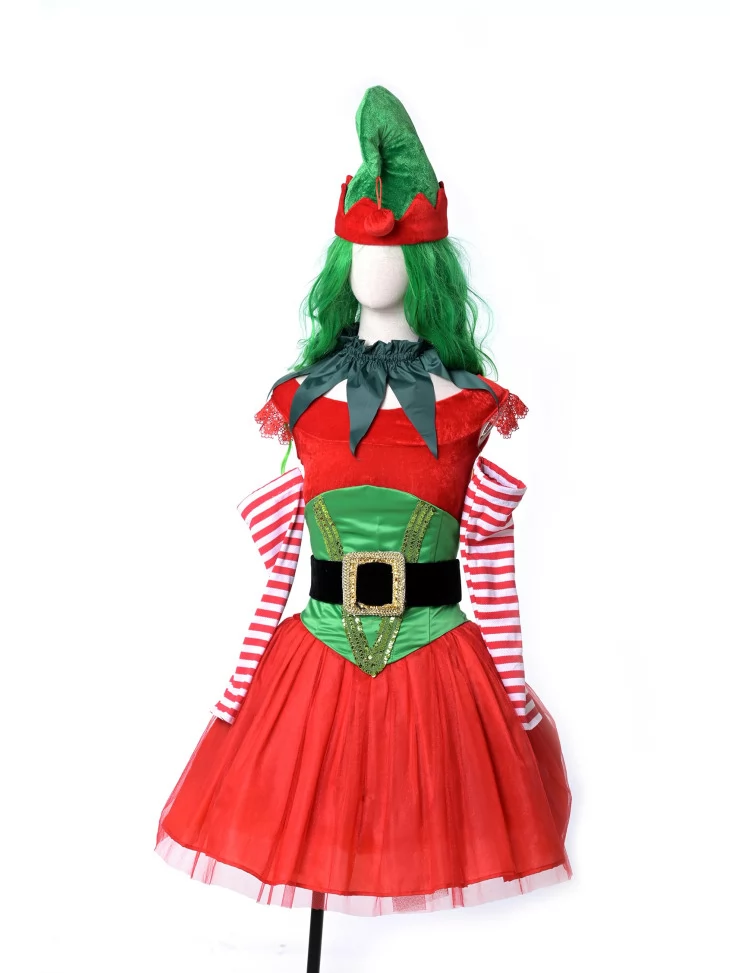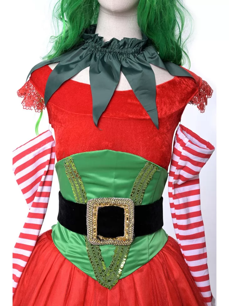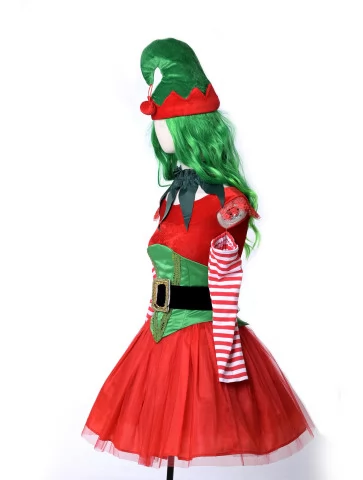 Оренда карнавальних костюмів — це зручний спосіб створити святковий образ без хлопот. Костюм «Ельфійка Санти в смугастих рукавах» — це грайливий та яскравий варіант для тих, хто хоче долучитися до новорічного дива. Червоний, зелений та білі смуги — класичне поєднання кольорів, яке одразу асоціюється з веселим ельфом у майстерні Санти. Образ виглядає яскраво та динамічно, а оригінальні деталі створюють настрій справжньої казки.