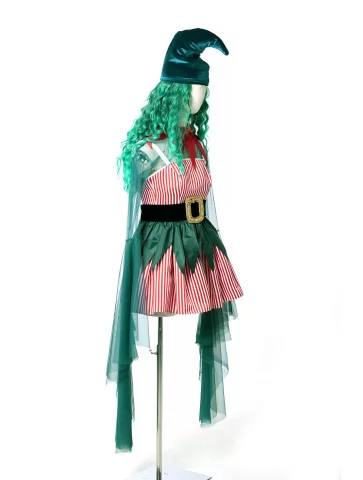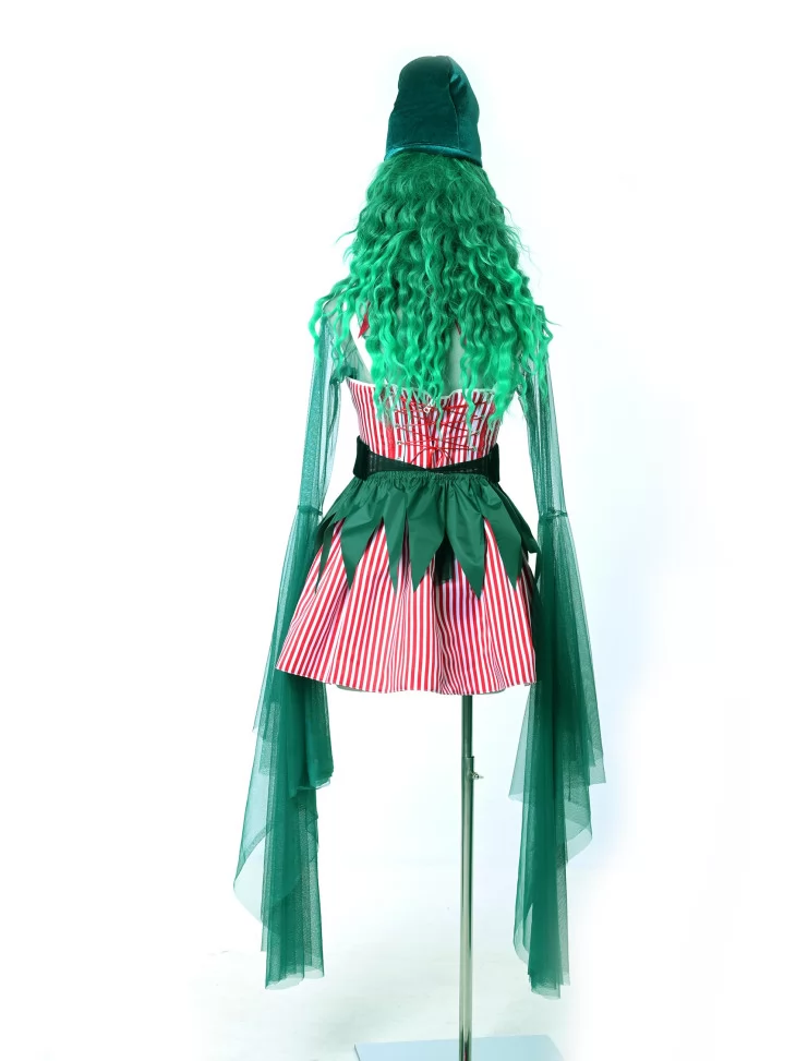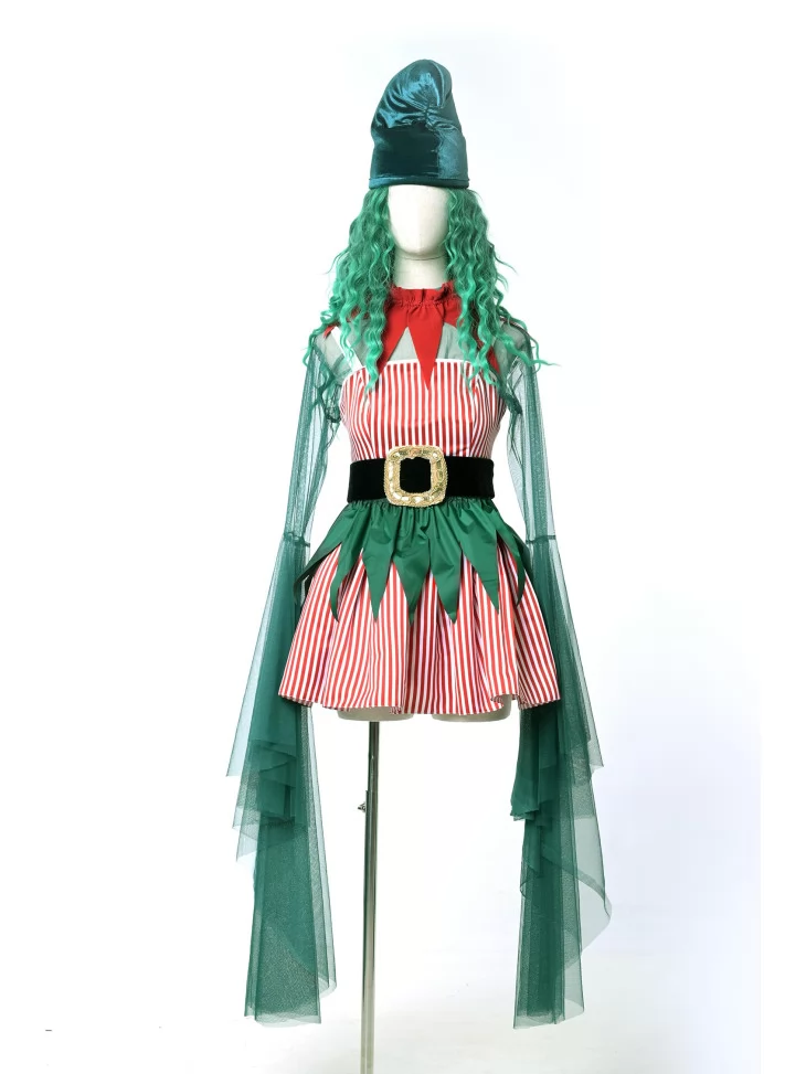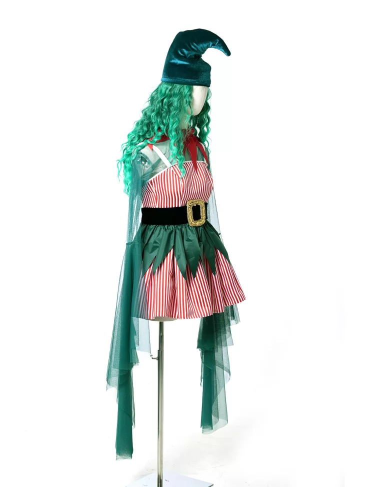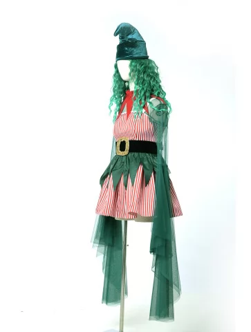 Оренда карнавальних костюмів — це найкраще рішення, коли хочеться виглядати яскраво, казково та святково, не витрачаючи багато часу на підготовку. Цей костюм ельфа створений для новорічної магії: червоні смужки, глибока зелень, казковий фасон і шапочка з вигином нагадують казкового помічника Санти або мешканця чарівного лісу.