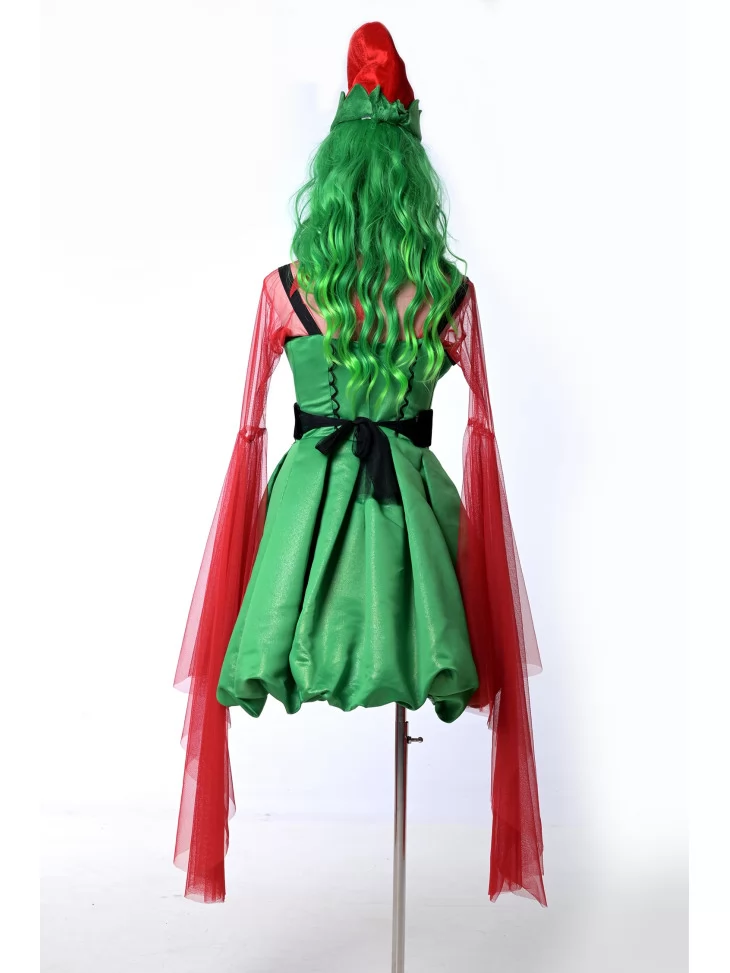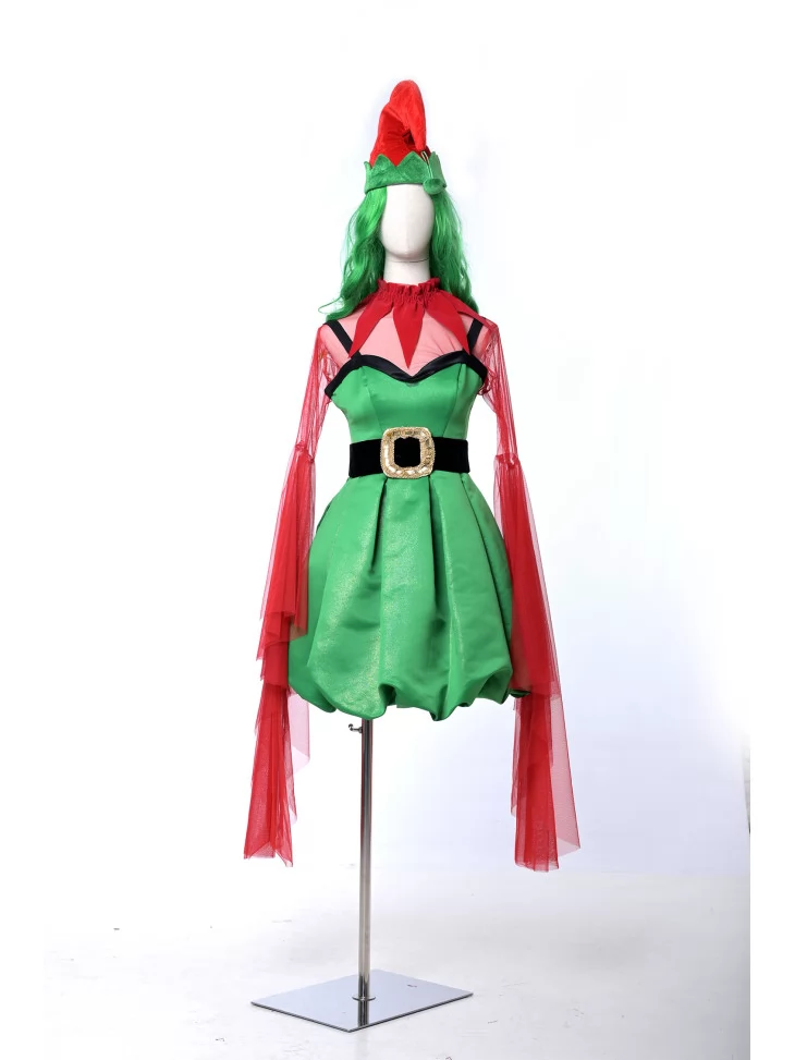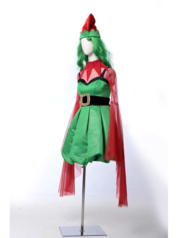 Цей яскравий костюм ельфа стане чудовим вибором для тих, хто хоче створити веселий, святковий настрій на будь-якому заході. Поєднання насиченого зеленого кольору з червоними акцентами миттєво асоціюється з новорічною казкою, а форма та оздоблення додають грайливості та шарму. В оренду карнавальних костюмів включено цей стильний варіант, який виділяється оригінальним дизайном.