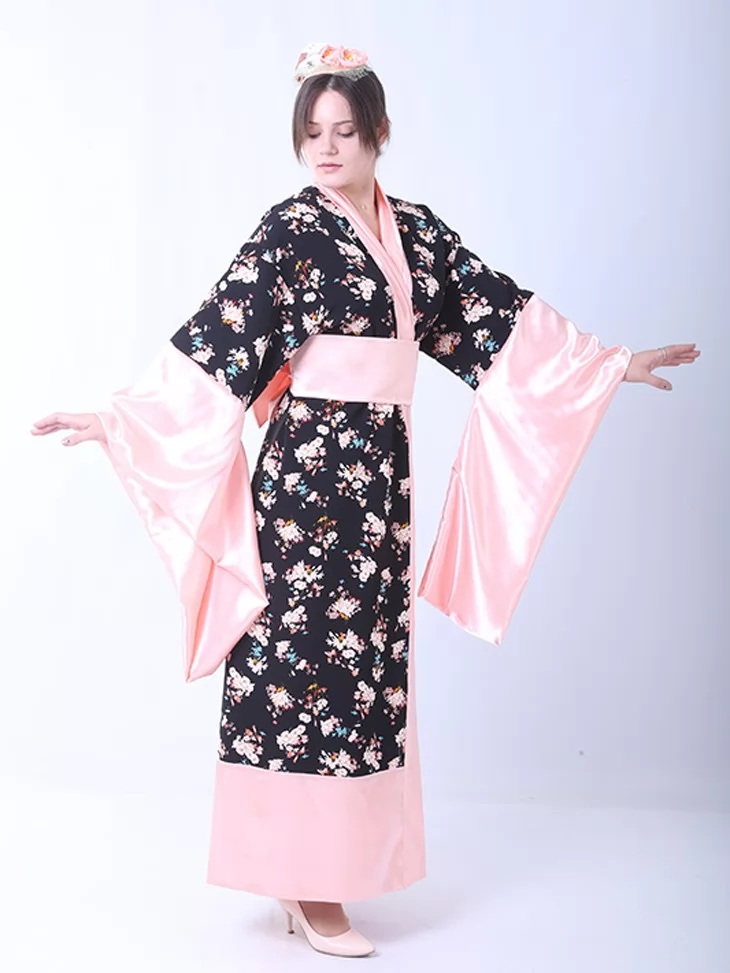 Костюм «Квітуча Сакура» переносить вас у чарівний сад Японії, де вечірнє повітря наповнене ароматом весни. Чорне кімоно з вишуканим квітковим принтом та ніжно-рожевими вставками створює елегантний і поетичний образ. Пояс та головний убір з квітами доповнюють стильну гармонію. Оренда карнавальних костюмів дає змогу приміряти на себе красу східної естетики без зайвих витрат.