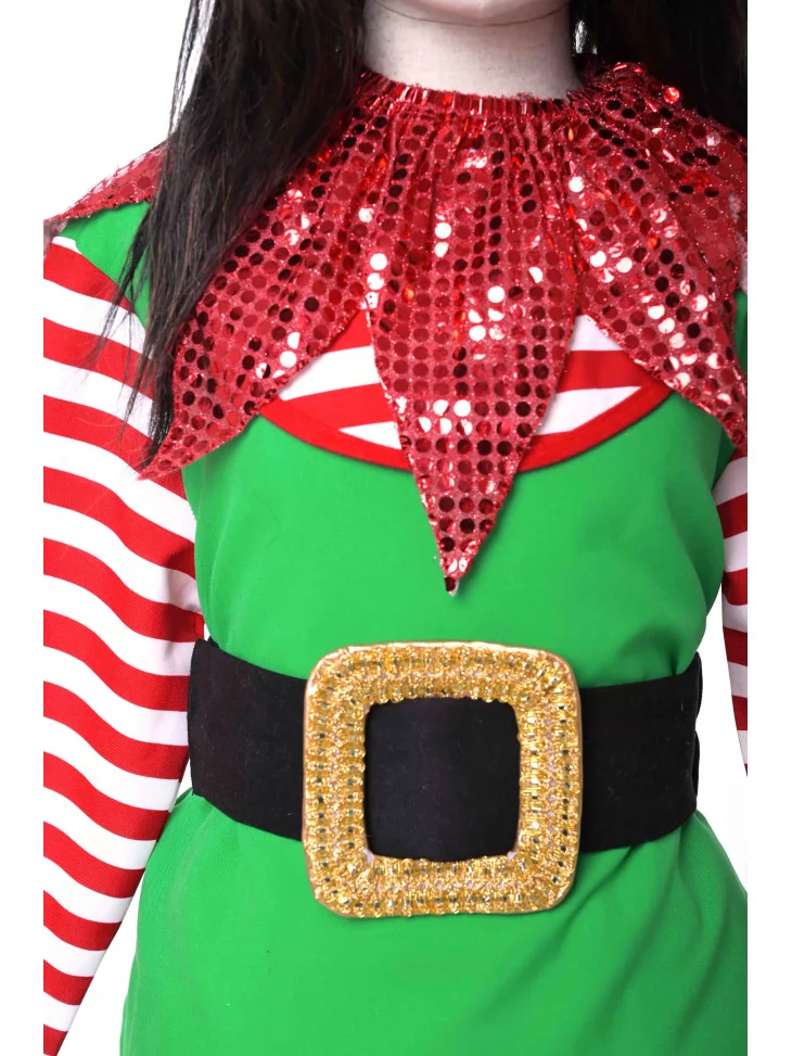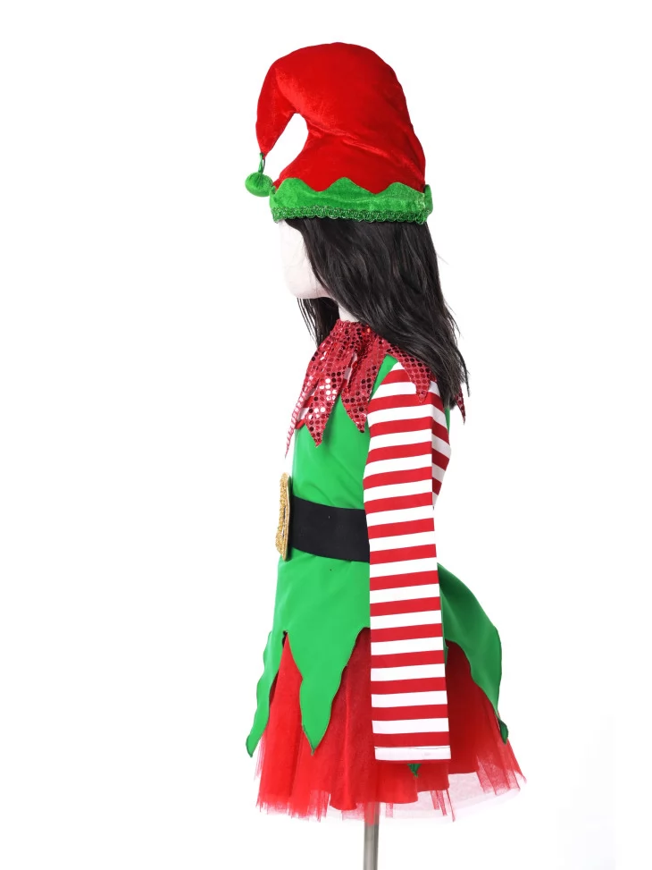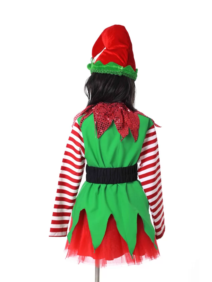 Оренда карнавальних костюмів — найзручніший спосіб створити яскравий образ для новорічного свята. Костюм «Малий Ельфик Святкового Дива» наповнений атмосферою казки: смугасті рукава, яскраво-зелений верх, червона пишна спідничка та блискучий комір створюють веселий, жвавий і по-справжньому святковий вигляд. У такому вбранні дитина виглядатиме як справжній помічник Санти.