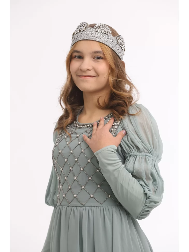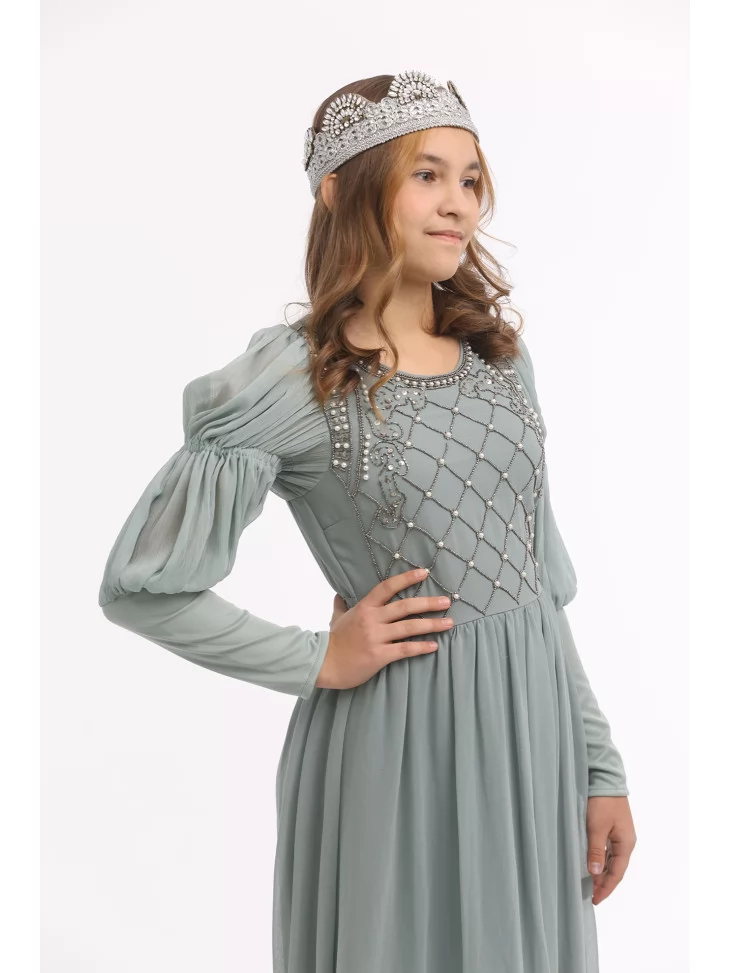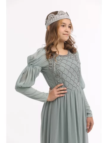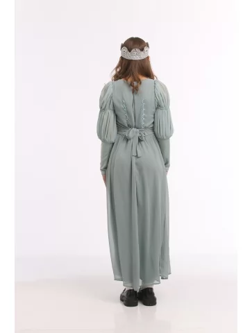 Оренда карнавальних костюмів — чудовий спосіб створити ніжний, витончений та казковий образ. Костюм «Принцеса Мрійливої Долини» вражає своєю легкістю та романтичністю: повітряна сукня м’якого м’ятного відтінку, об’ємні рукави та мереживне плетення на грудях створюють вигляд, гідний справжньої героїні казки. Стильний головний убір додає образу королівського шарму.