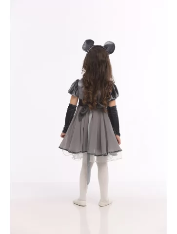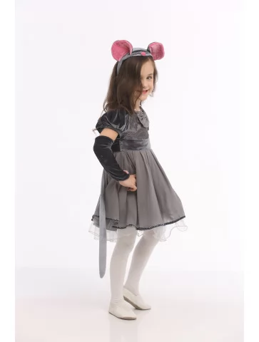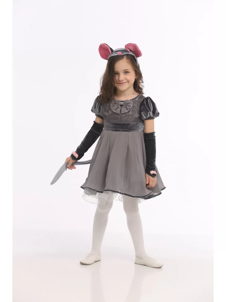 Оренда карнавальних костюмів — чудовий спосіб створити ніжний, милий та казковий образ для дитячого свята. Костюм «Мишка Сіренька з Чарівного Горішка» поєднує легкість, рухливість і милу естетику: повітряна сіра сукня, оксамитові рукавчики та обруч із вушками створюють образ маленької героїні казки або новорічного виступу.