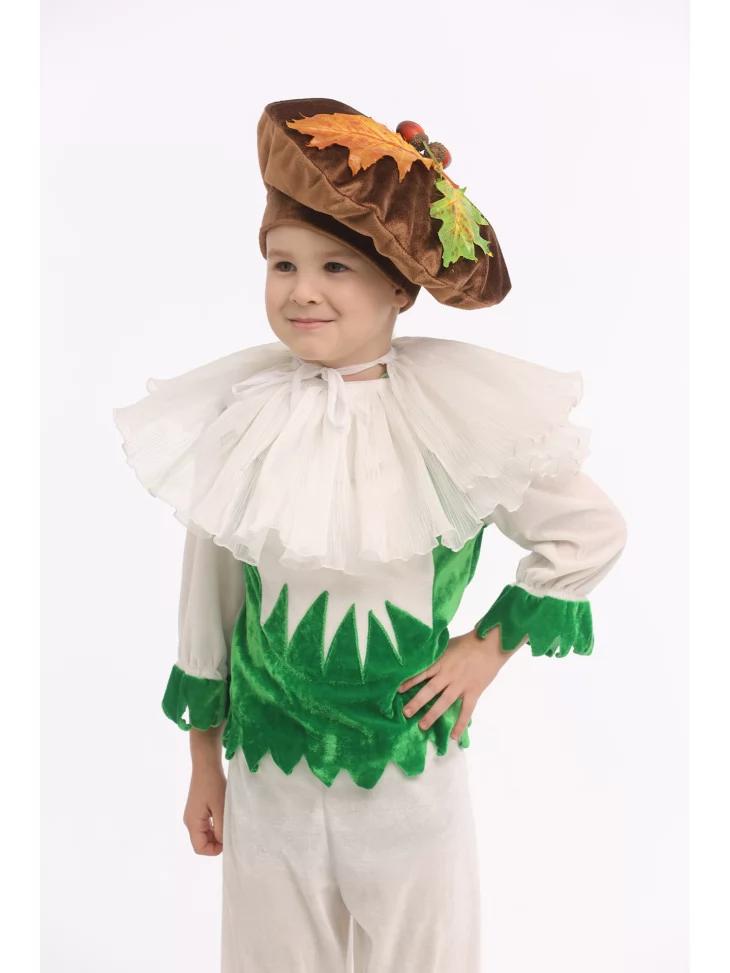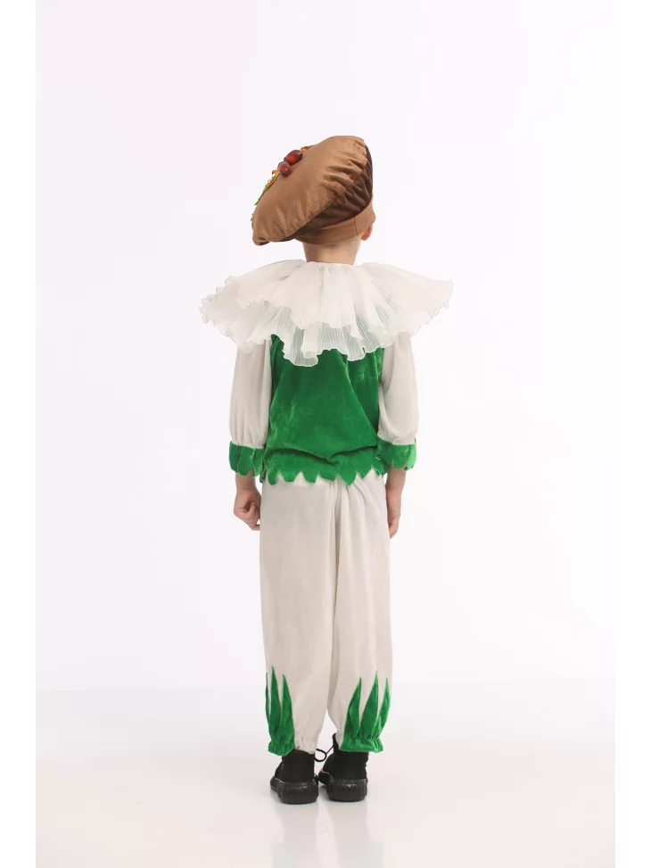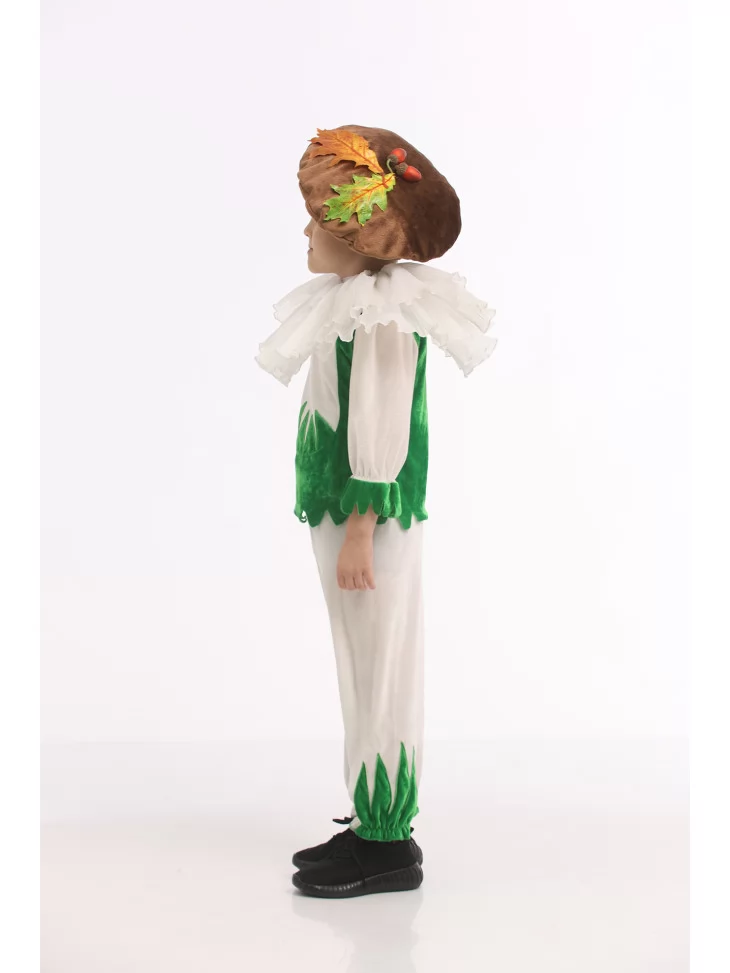 Оренда карнавальних костюмів — чудовий спосіб створити веселий, яскравий і впізнаваний образ для дитячої вистави чи свята. Костюм «Грибочок Лісовий Дзвіночок» поєднує ніжні світлі відтінки та соковиту зелень, створюючи чарівний образ маленького мешканця лісу. Легкі тканини, пишний воротничок і кумедна шапочка роблять цей образ по-справжньому казковим.