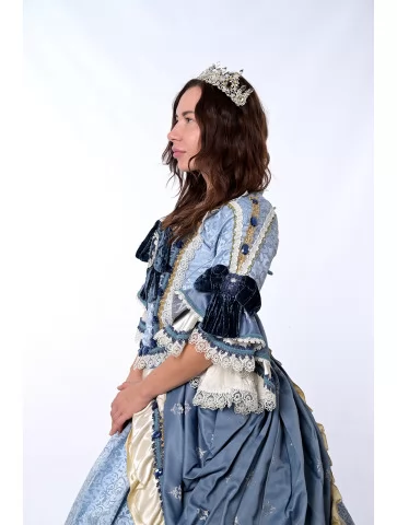 Цей костюм у стилі Рококо переносить нас у розкішні зали французького двору XVIII століття. Завдяки поєднанню витонченої вишивки, насичених тканин і декоративних елементів, образ виглядає по-королівськи вишукано. Такий варіант стане ідеальним рішенням для тих, хто шукає вишукану оренду карнавальних костюмів на бал чи історичну подію.