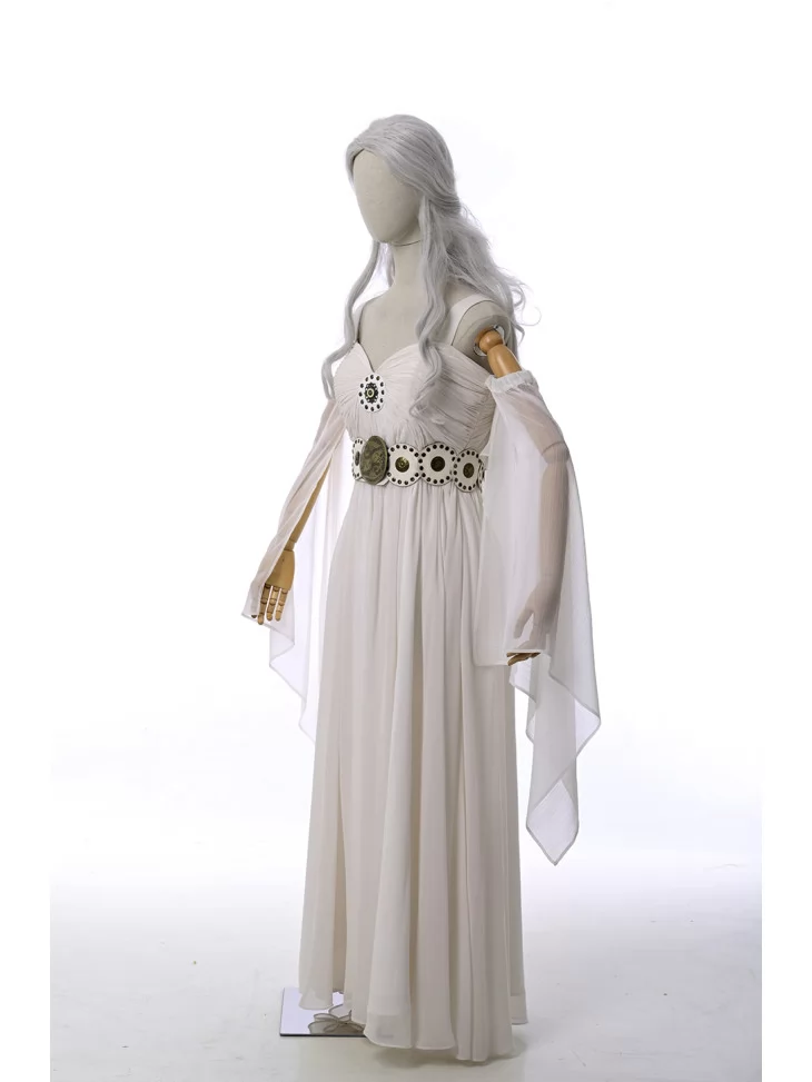 Цей карнавальний костюм натхненний образом Дейенеріс Таргарієн з серіалу Гра престолів, коли вона постає у вбранні світлих відтінків, що символізують силу, чистоту та велич. Ідеальне рішення для ефектного перевтілення у відому героїню. Прокат карнавальних костюмів — чудовий варіант для фанатів всесвіту Westeros, які прагнуть виглядати епічно.
