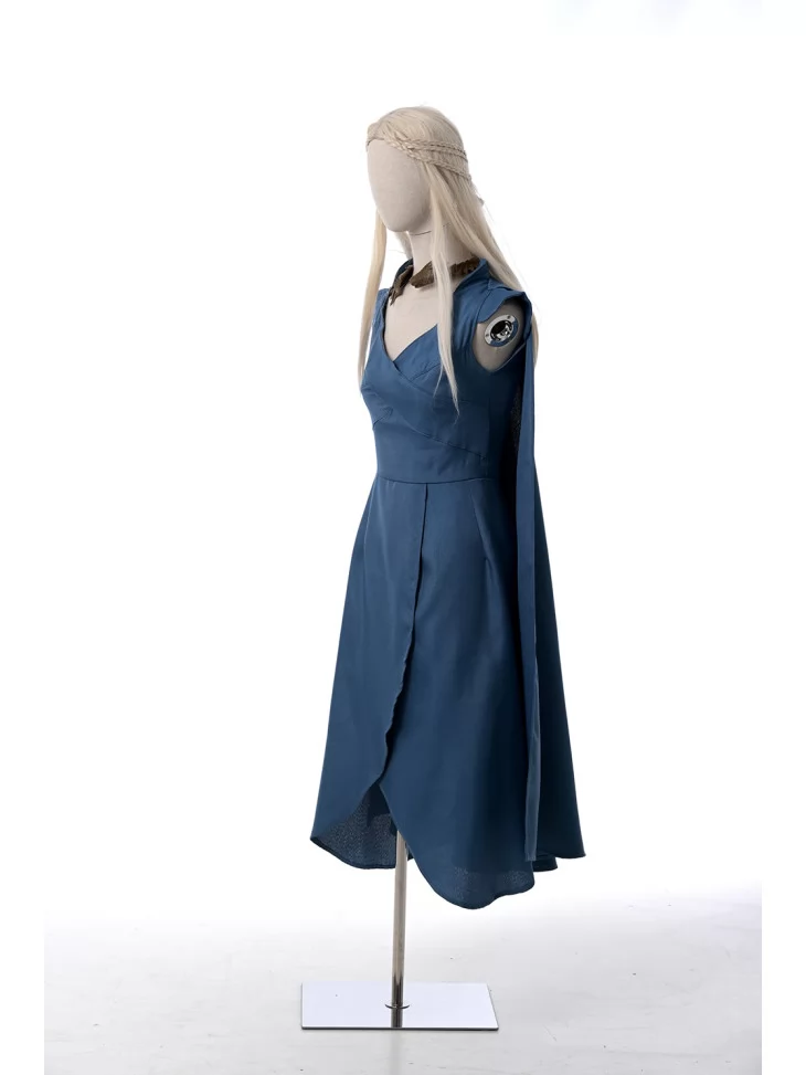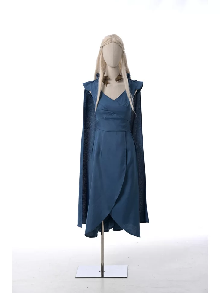 Цей образ Дейенеріс Таргарієн натхнений її легендарною появою у Міерині — коли вона тільки починає свій шлях як визволителька рабів і майбутня королева. Легкий крій, витончені лінії та глибокий синій колір — усе говорить про шляхетність, хоробрість і природну владу. Прокат карнавальних костюмів із серіалу Гра престолів — це спосіб відчути себе героїнею улюбленої історії.