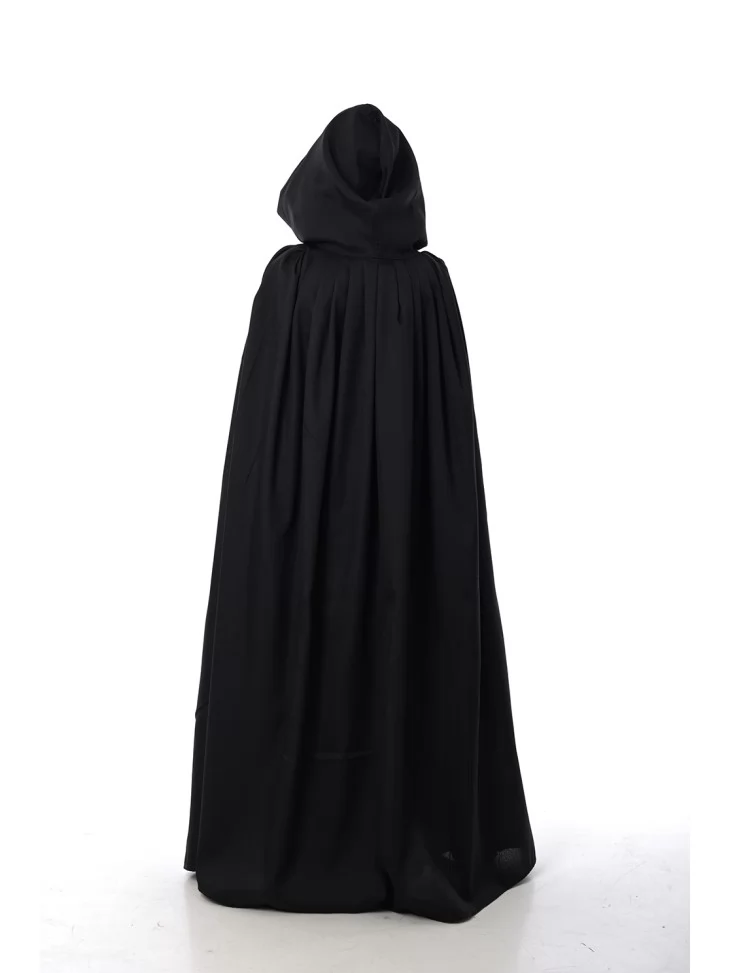 – чорна накидка з капюшоном — ключовий елемент образу та ефектна деталь