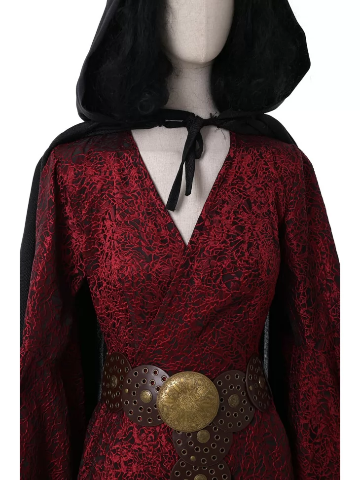 Цей костюм створений за образом Матінки Ґотел — антагоністки з казки про Рапунцель. Її зовнішність поєднує елегантність, драматизм і магічну енергетику. Ідеальний вибір для тих, хто шукає ефектний, трохи готичний образ із відтінком чарівництва. Прокат карнавальних костюмів такого типу дозволяє легко втілити героїню з темної сторони казки.