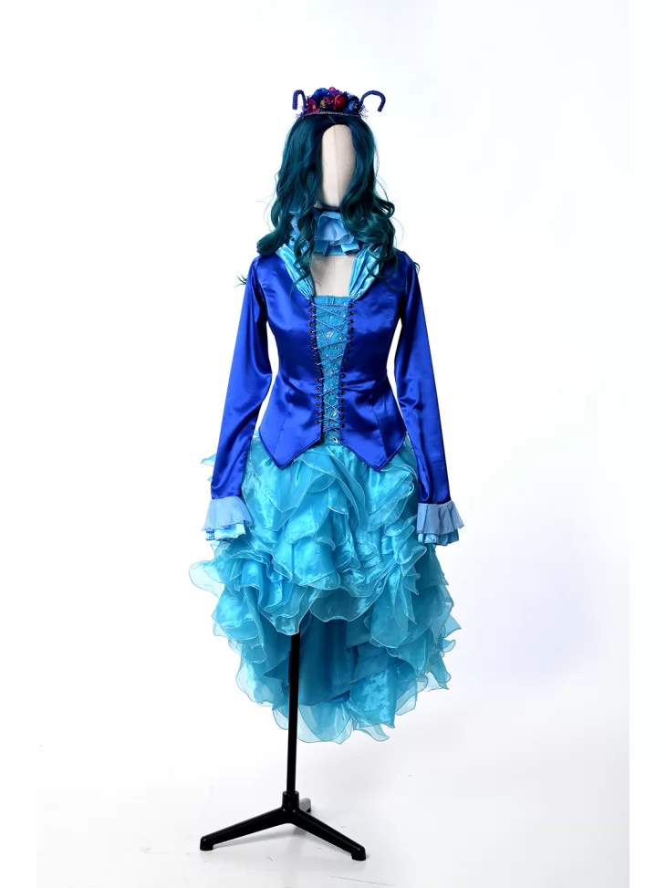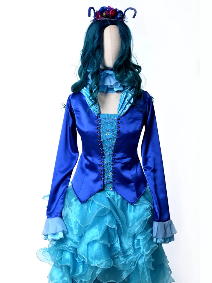 Костюм Гусені поєднує елегантність, театральність та незвичний казковий шарм. Образ одразу привертає увагу завдяки яскравим відтінкам синього та вигадливим деталям.