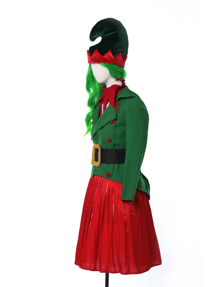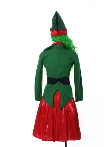 Цей жіночий карнавальний костюм ельфа поєднує в собі яскраві кольори, святковий настрій та казкову естетику. Вбрання одразу асоціюється з Різдвом, чарівним світом подарунків і помічниками Санти. Його дизайн продумано до дрібниць: зручний крій, акцент на талії, блискуча тканина і святкова стилізація — все, щоб створити незабутній новорічний образ.