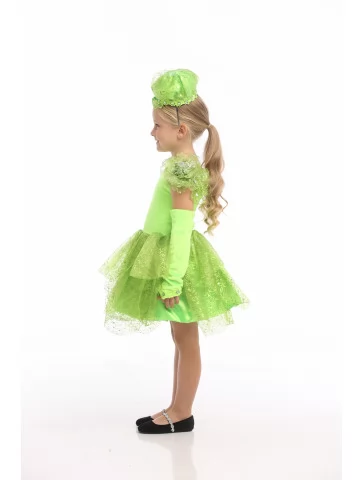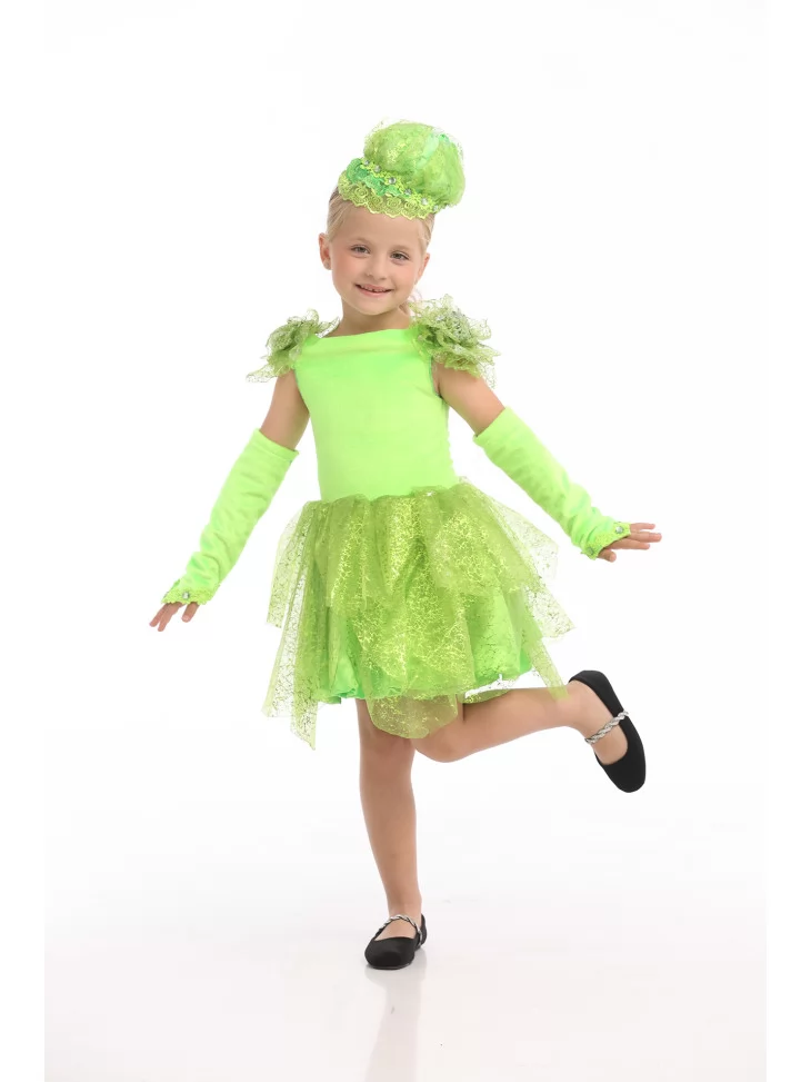 Оригінальний, свіжий та дуже милий костюм Капусти створений спеціально для яскравих дитячих свят і тематичних виступів. На фото образ виглядає легким та життєрадісним завдяки насиченому салатово-зеленому кольору, повітряним тканинам і багатошаровій фактурі, що асоціюється з листям капусти. Це чудовий варіант для тих, кого цікавить прокат карнавальних костюмів з незвичною та легко впізнаваною тематикою.