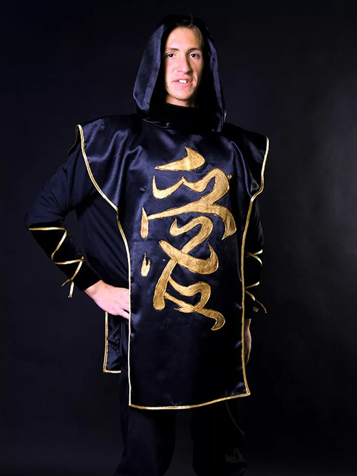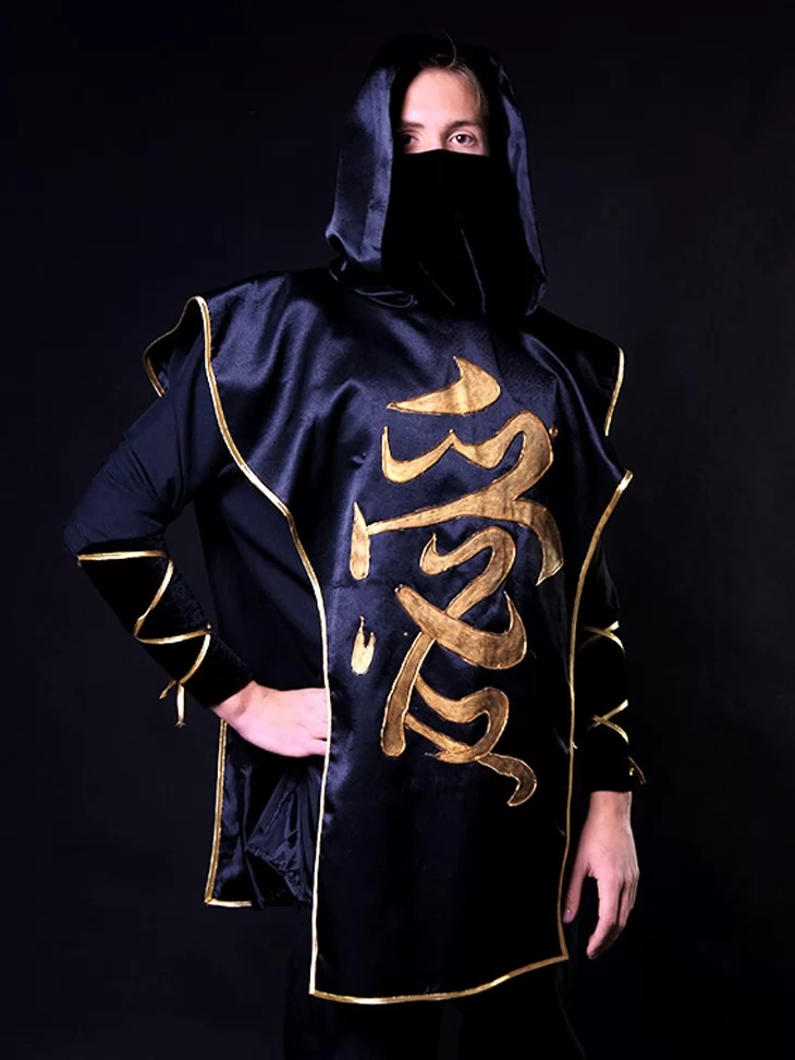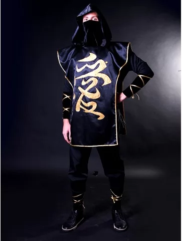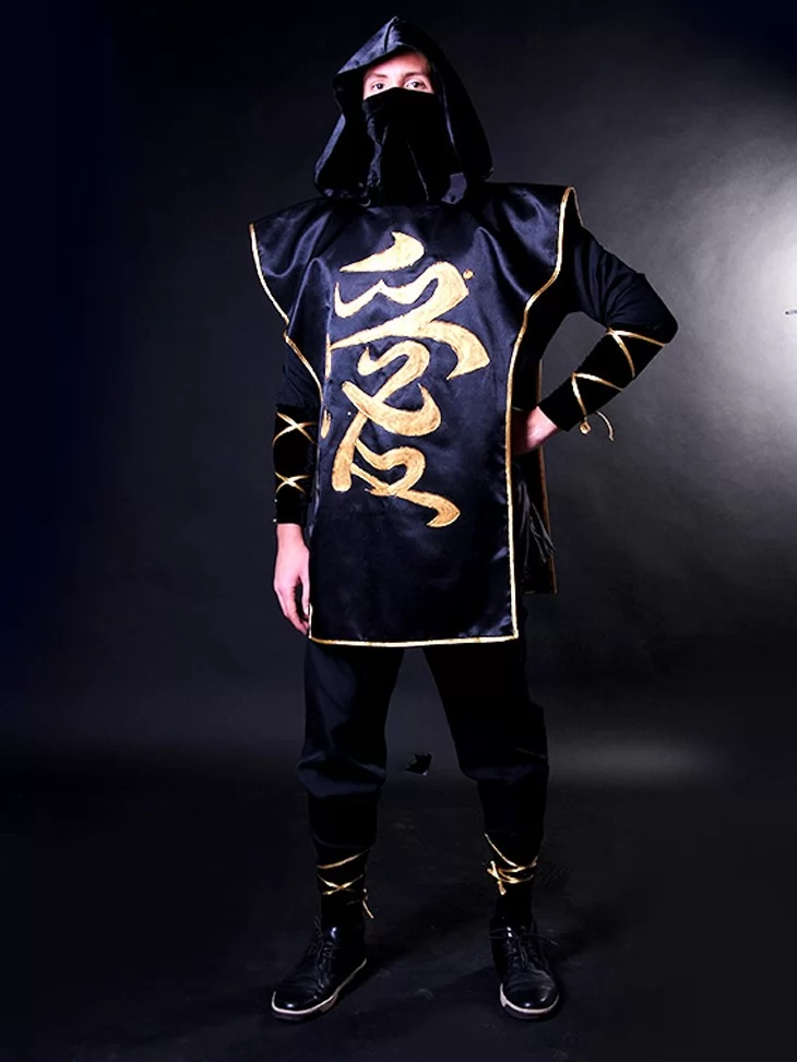Карнавальний костюм ніндзя в чорному виконанні — це стильний образ для сміливого героя, який вміє зливатися з темрявою. Ідеально підходить для тих, хто прагне ефектного перевтілення на тематичну вечірку, квест або фотосесію. Завдяки глибокому чорному кольору і золотим деталям, костюм виглядає загадково та підкреслює силу і витонченість.