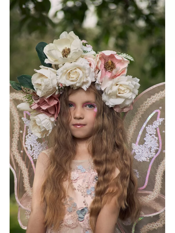 – Об’ємний квітковий віночок із великих троянд, що доповнює образ ніжної лісової феї