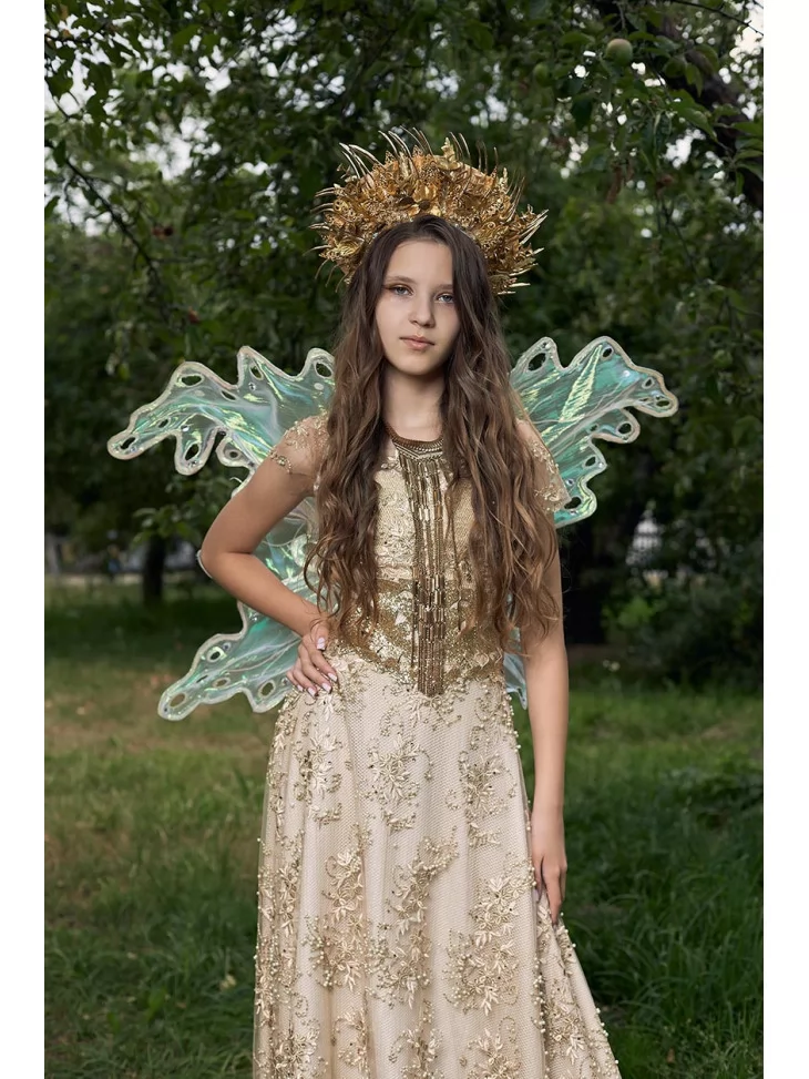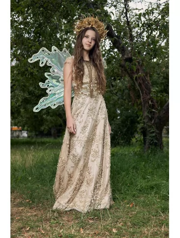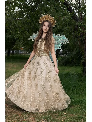Якщо ви шукаєте оренду карнавальних костюмів для дівчинки, яка хоче виглядати як справжня чарівниця чи фея — цей костюм створений саме для цього. Образ золотої феї поєднує розкіш, витонченість і легкість, даруючи казковий настрій кожній дитині.