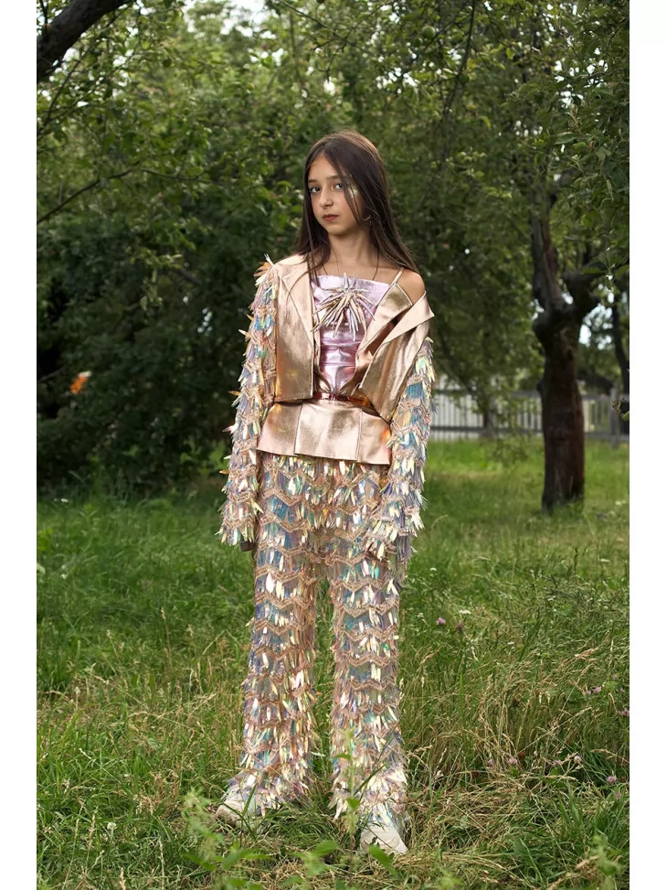 – штани щедро прикрашені блискучими паєтками-хвилями
