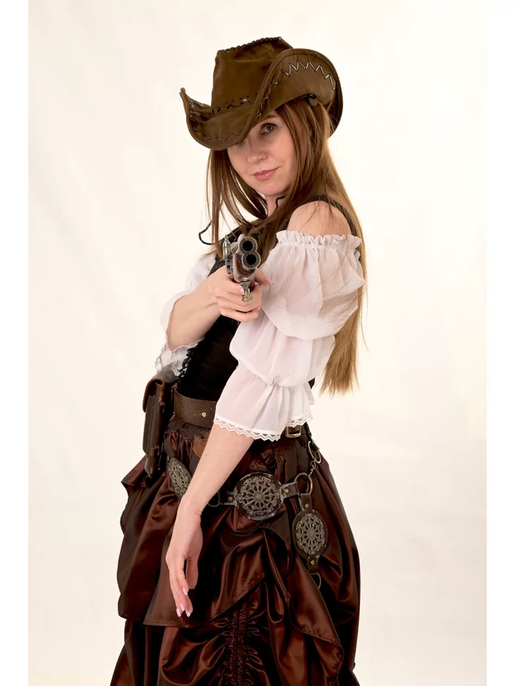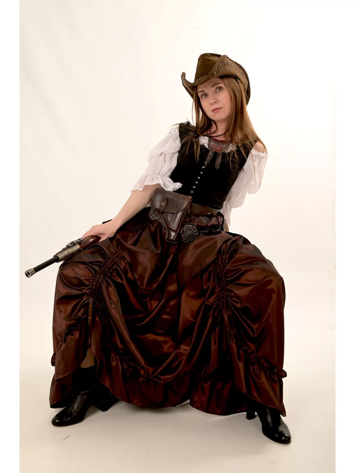 Костюм ковбойки — ідеальний вибір для тих, хто хоче приміряти на себе роль героїні пригодницького вестерну. Образ натхненний атмосферою американського Дикого Заходу: поєднання сили, стилю та свободи у кожному елементі. В цьому вбранні ви не залишите байдужим жодного шерифа на святі! Костюм доступний в прокат карнавальних костюмів.