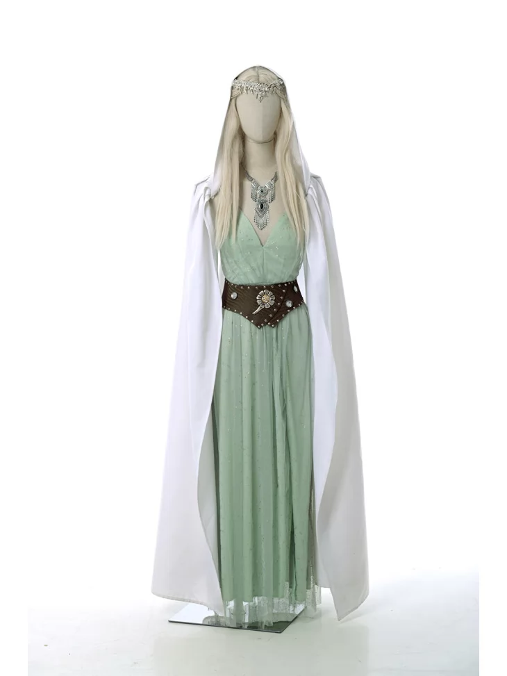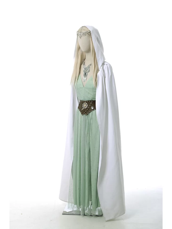 Цей чарівний костюм натхненний образом Галадріель — володарки Лотлоріену з епічної саги «Володар перснів». Елегантна сукня в поєднанні з білим плащем, срібними прикрасами та деталями ельфійського стилю створюють атмосферу магії, світла та витонченості. Прокат карнавальних костюмів дозволяє вам стати героїнею легендарної саги без зайвих витрат.