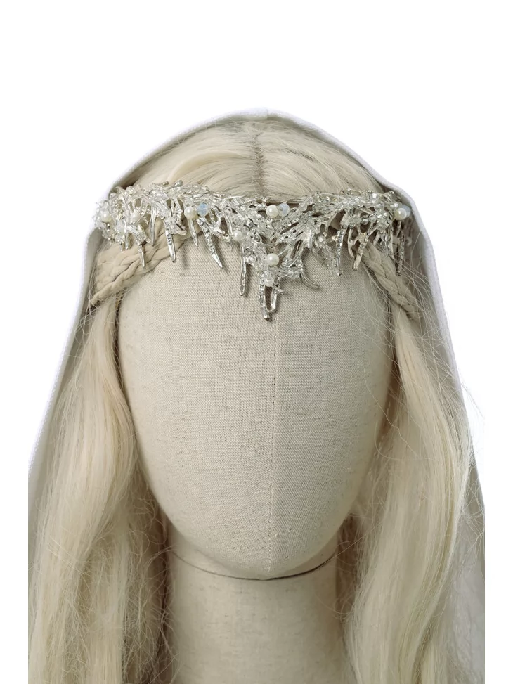 – срібляста діадема з кришталевими елементами та перлинками