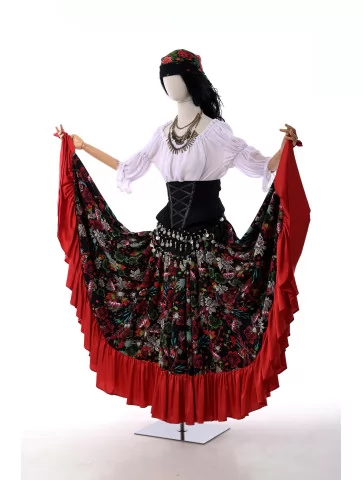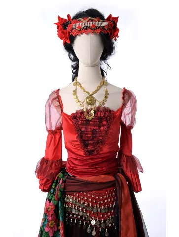 Цей яскравий образ стане чудовим вибором для прокату карнавальних костюмів, коли хочеться створити пристрасний і дуже ефектний циганський стиль.