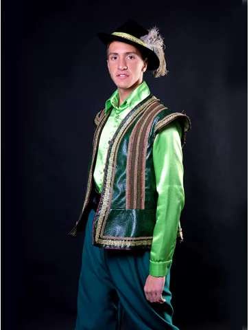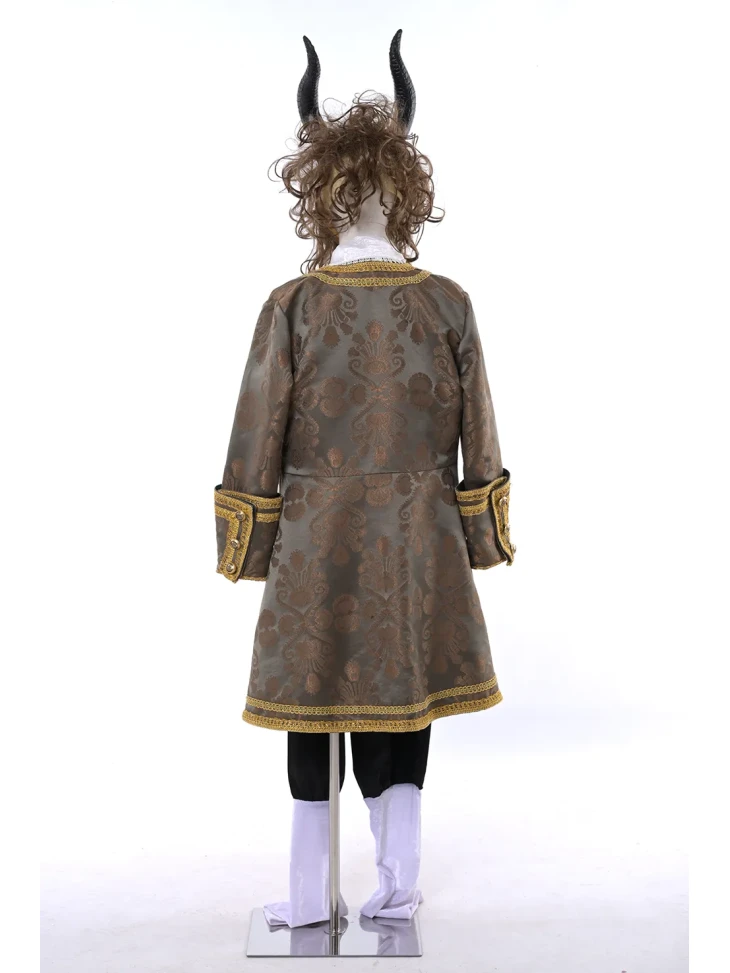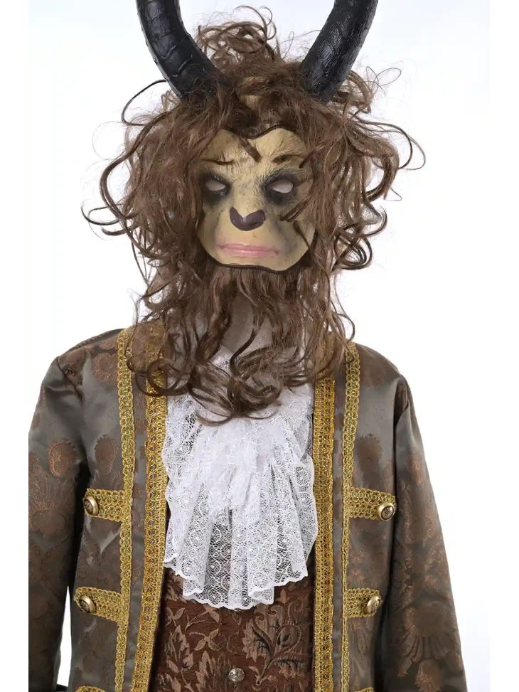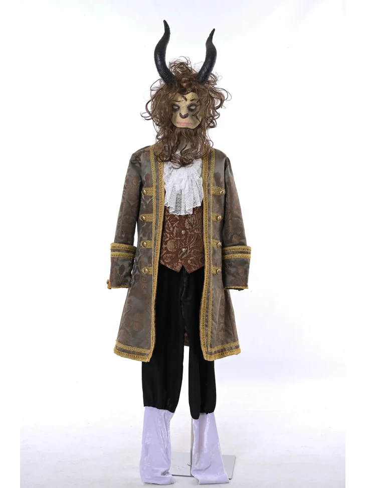 Яскравий казковий образ могутнього Чудовиська, знайомого з легендарної історії про Красуню і зачарованого принца. Розкішний камзол із декоративною обробкою, жилет та класичні штани створюють аристократичний силует, а маска з рогами й гривою додає образу справжньої казкової містичності. Такий костюм виглядає ефектно на сцені, фотосесіях та тематичних заходах. Він стане чудовим вибором для оренди карнавальних костюмів на театральні постановки, дитячі свята або казкові вечірки.