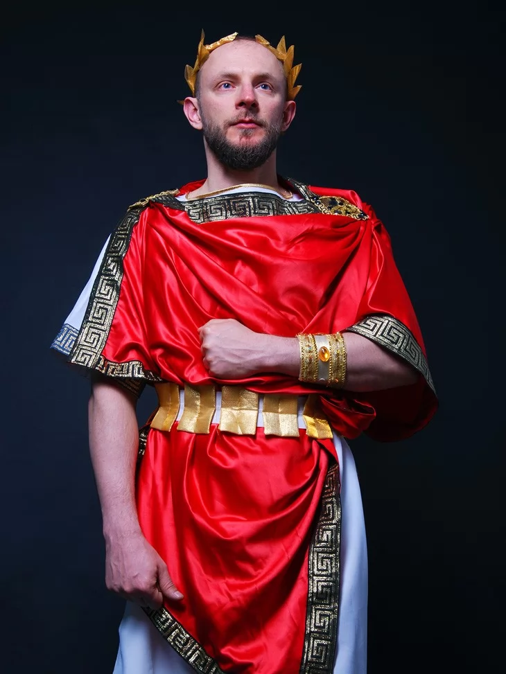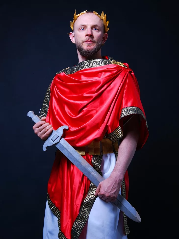 Карнавальний костюм грецького імператора або бога у червоній тозі — це розкішне перевтілення у володаря давньої Еллади. Він передає дух могутності, благородства та історичної глибини. Чудово підходить для театральних виступів, шкільних свят, історичних реконструкцій, корпоративів та фотосесій.