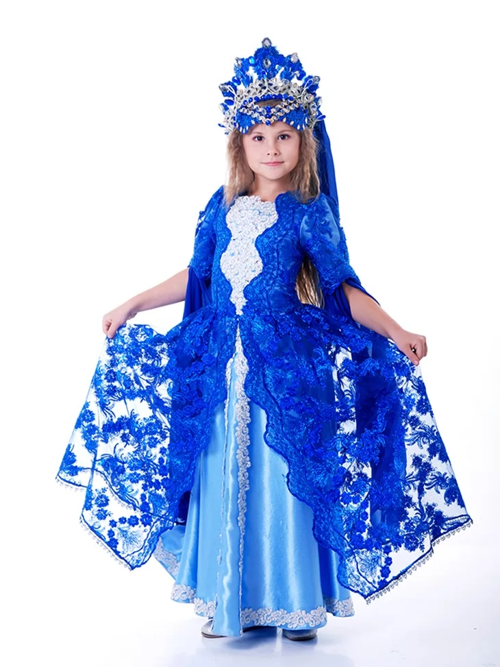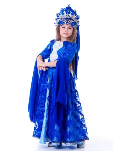 Костюм Східної Цариці «Сапфірова Велич» створює образ справжньої володарки Сходу — величної, загадкової та незабутньої. Костюм ефектно виглядає на сцені та у фотозонах, тому часто обирається і для прокат карнавальних костюмівна вистави, східні постановки та тематичні свята.