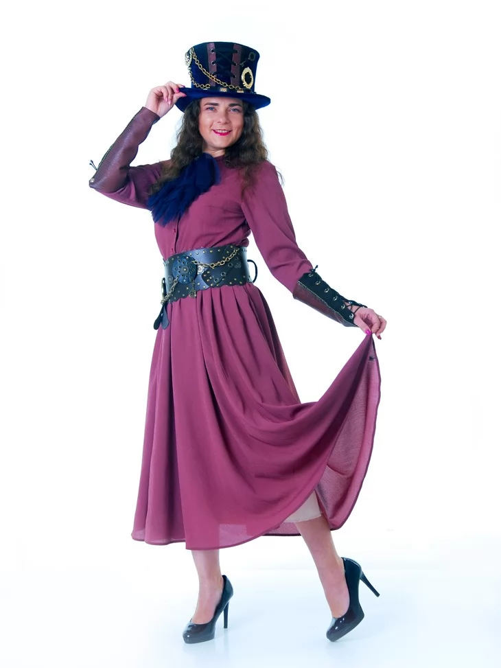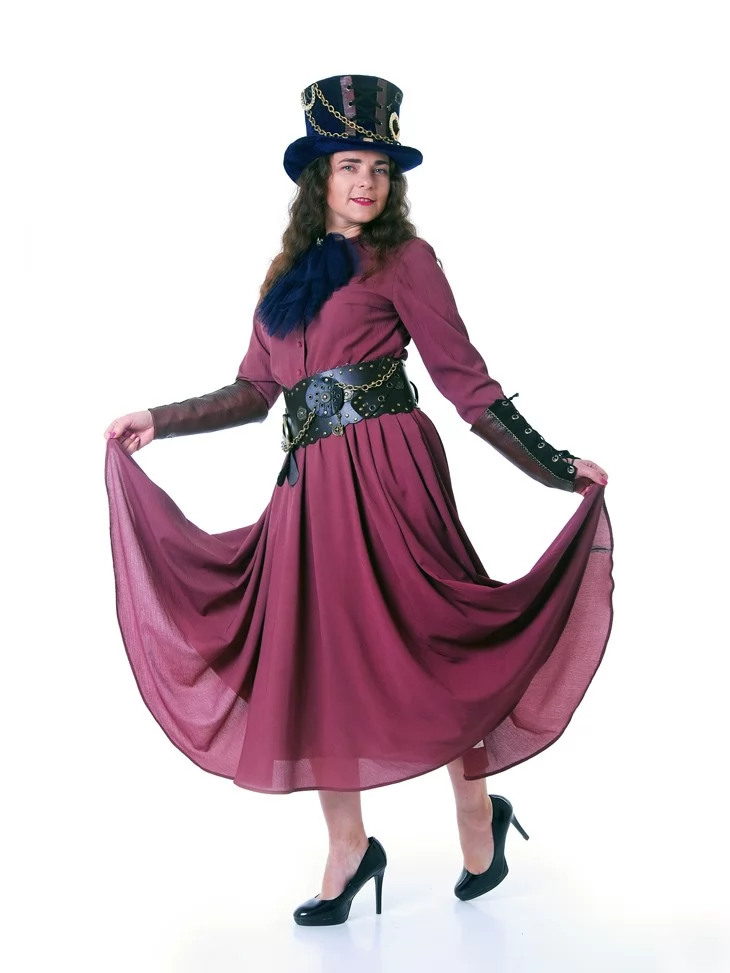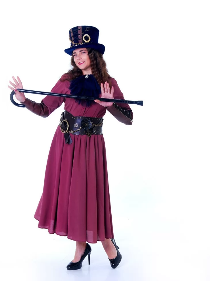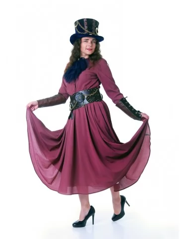 Цей образ доступний через прокат карнавальних костюмів, щоб ти могла відчути себе справжньою леді технічної епохи, яка керує механізмами часу.