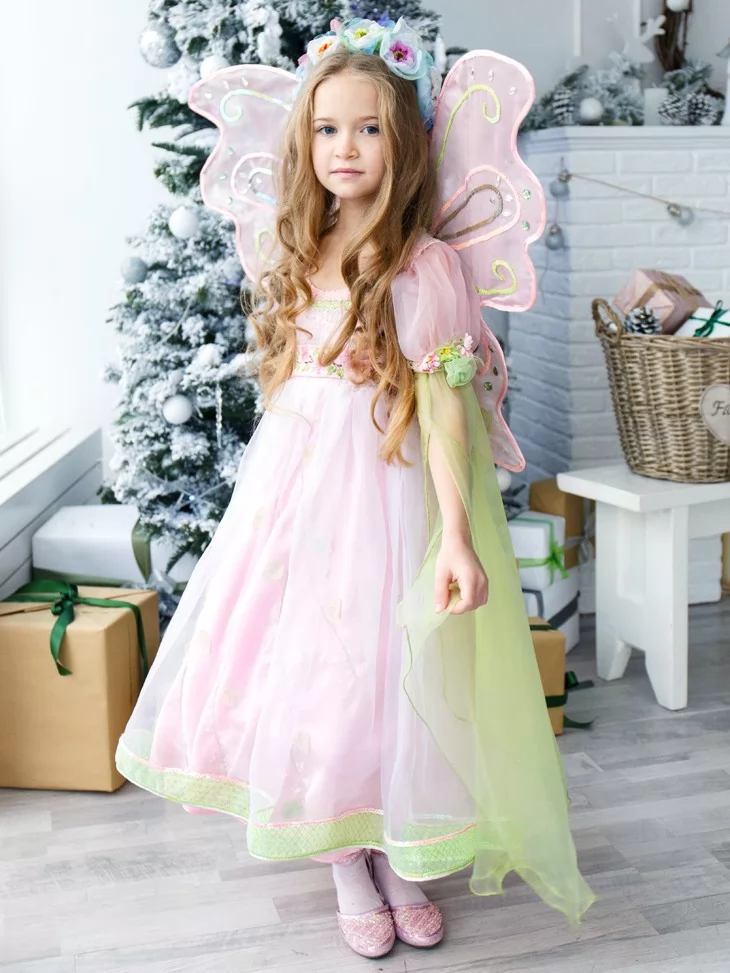 Костюм Фея Весни з квітковим вінком та крильцями подарує справжню магію перевтілення, а прокат карнавальних костюмів допоможе легко створити ніжний весняний образ для будь-якої події.