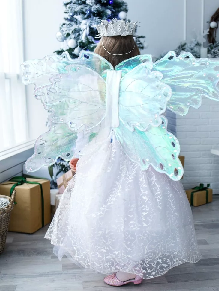 Образ Костюма Снігової Володарки Перламутрових Крил наповнить свято сяйвом зими, ніжністю та справжньою казковою магією, створюючи незабутні емоції та чарівні фото.