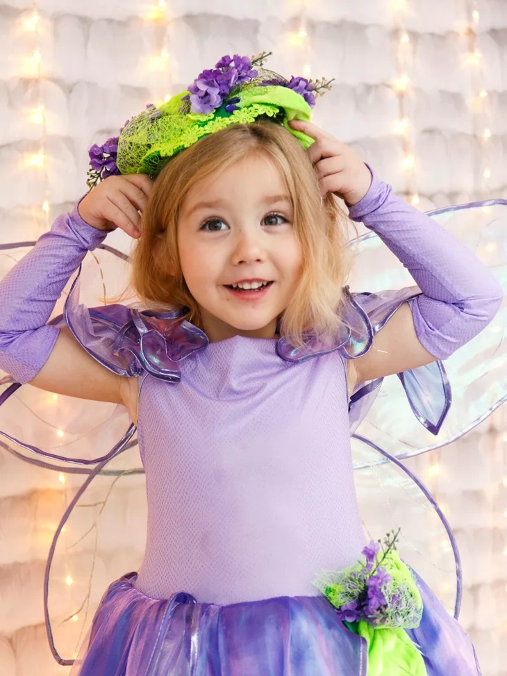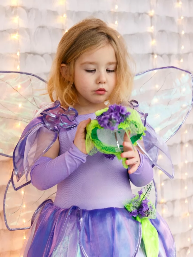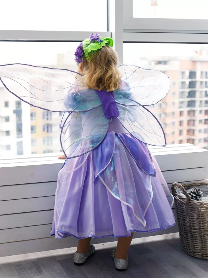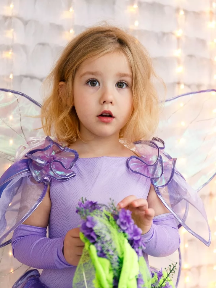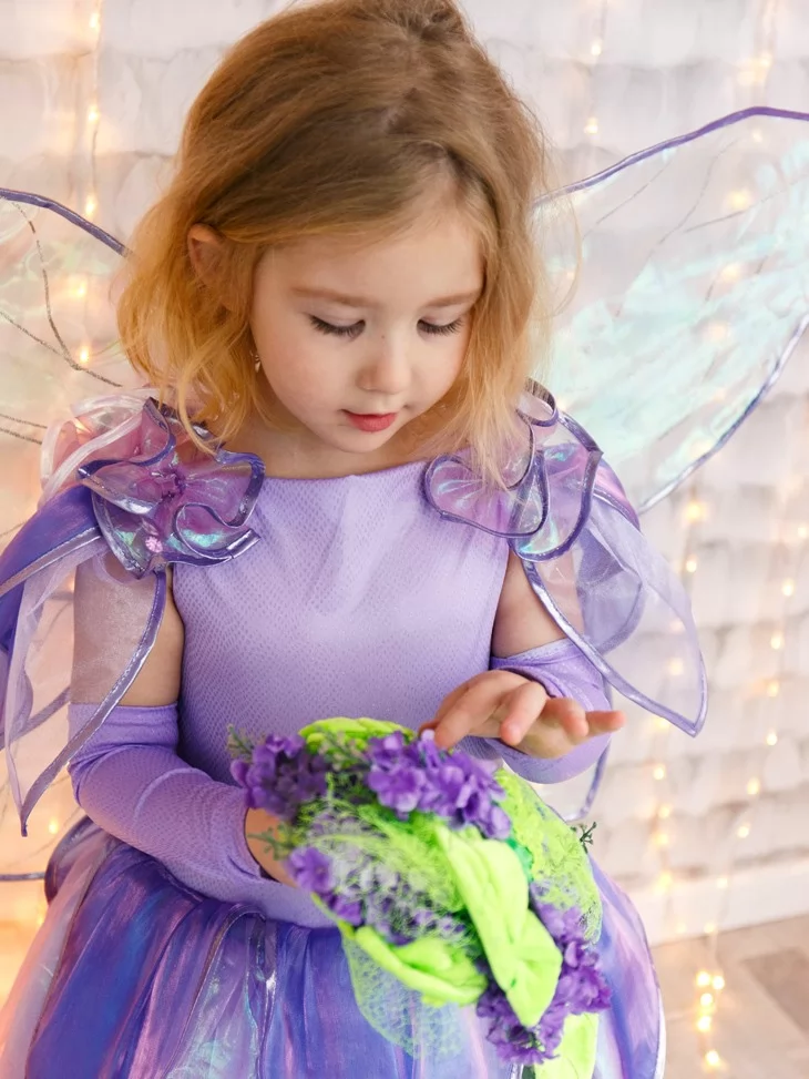 Костюм Фея Лавандового Сяйва з прозорими крильцями подарує справжнє відчуття чарівного перевтілення, а прокат карнавальних костюмів допоможе легко створити незабутній казковий образ.